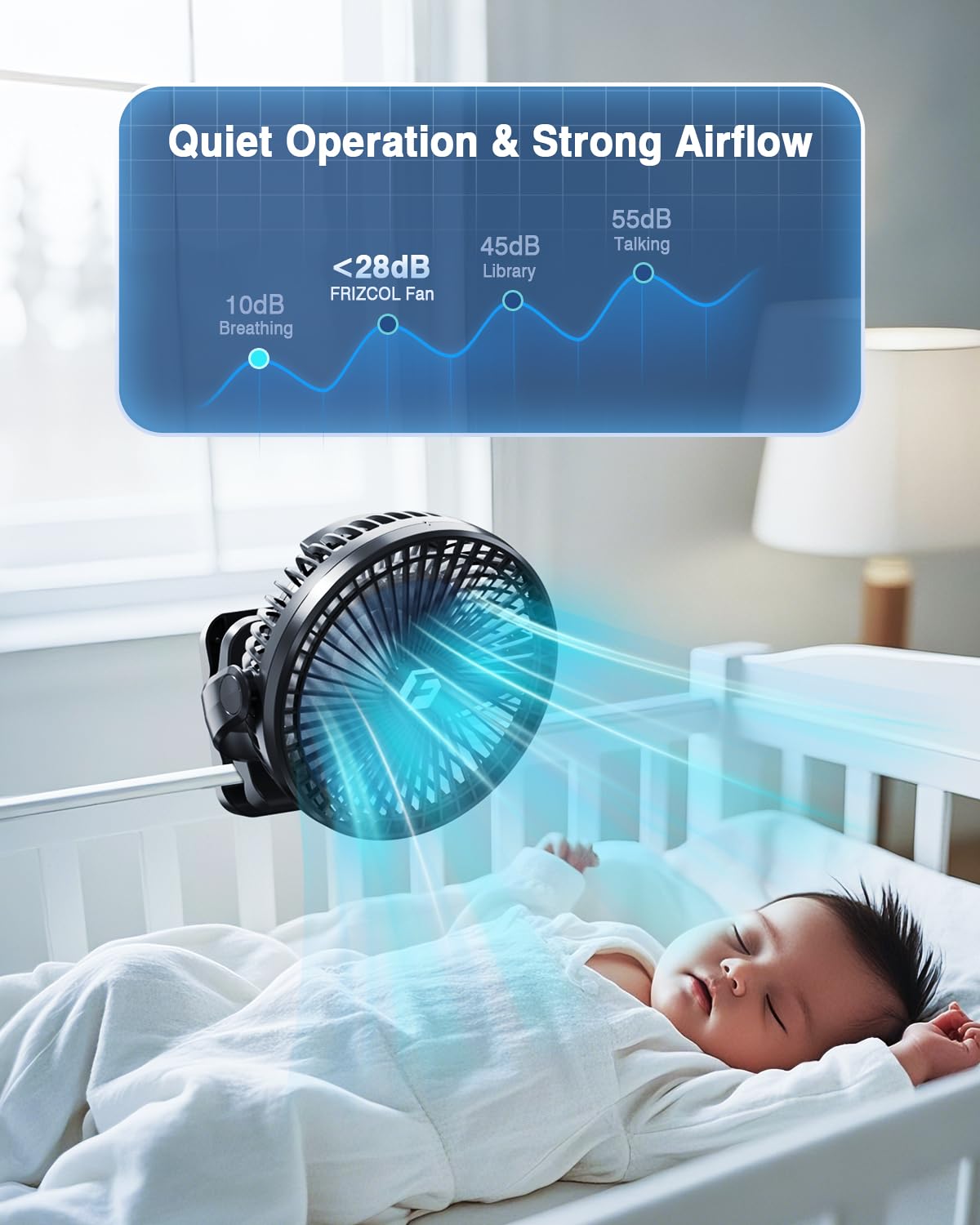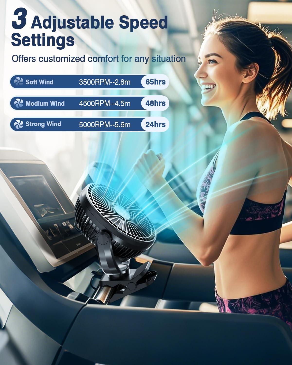 • Might but quiet: Portable fan blades make powerful airflow circulate to wherever you want, quietly create low noise(23 db Minimum), effectively reduce the effects of using fan to your sleep at night