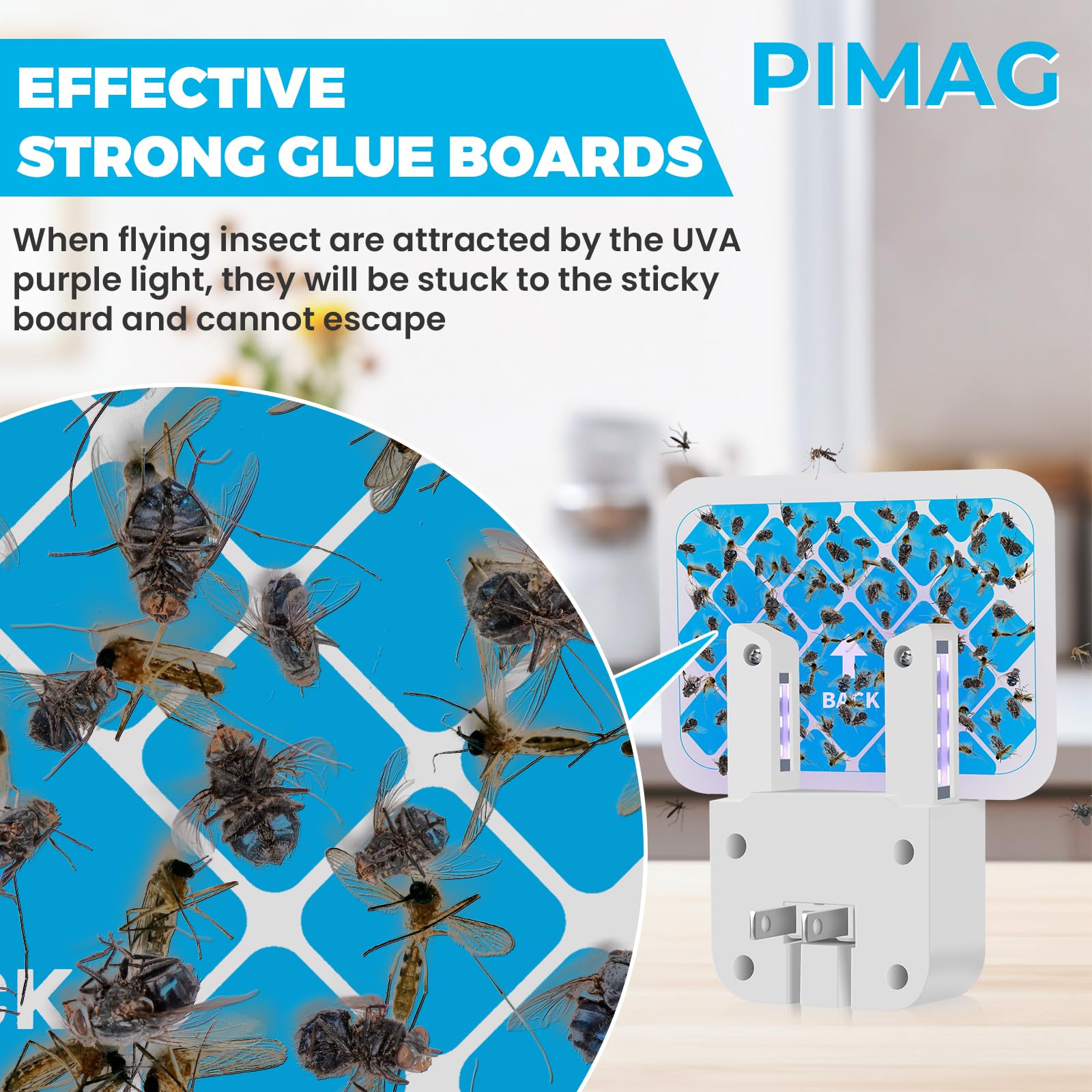 • TWO IN ONE: This fruit fly traps for indoors uses specially designed UV waves to attract mosquitoes, fruit flies, houseflies, moths, etc., and then sticks to them with a sticky card so they can't escape. At the same time, the blue-violet light from this indoor mosquito and fly trap can also be used as a night light.