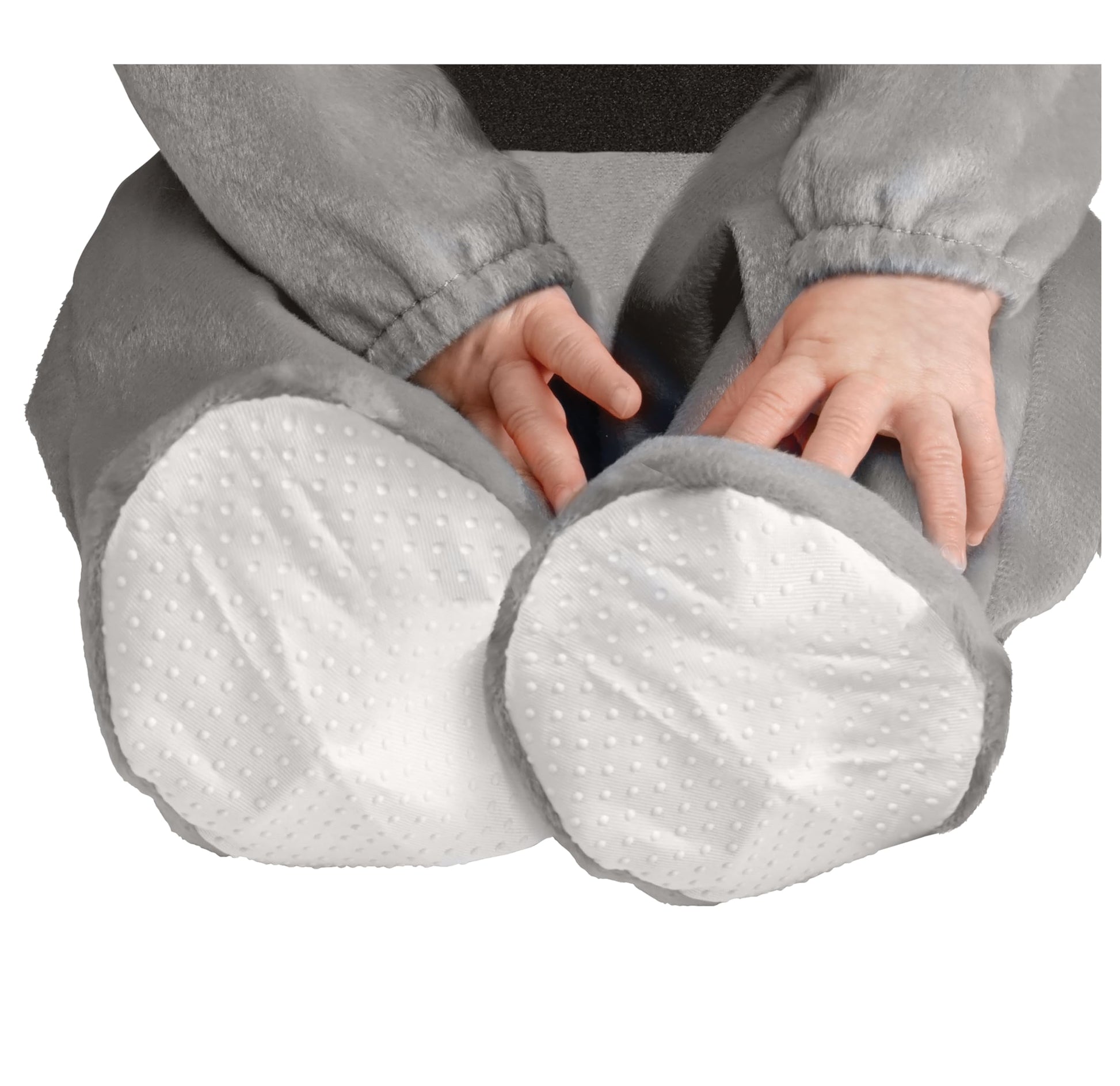 • Velour jumpsuit fastens with snaps at center back and along inseams for easy diaper access