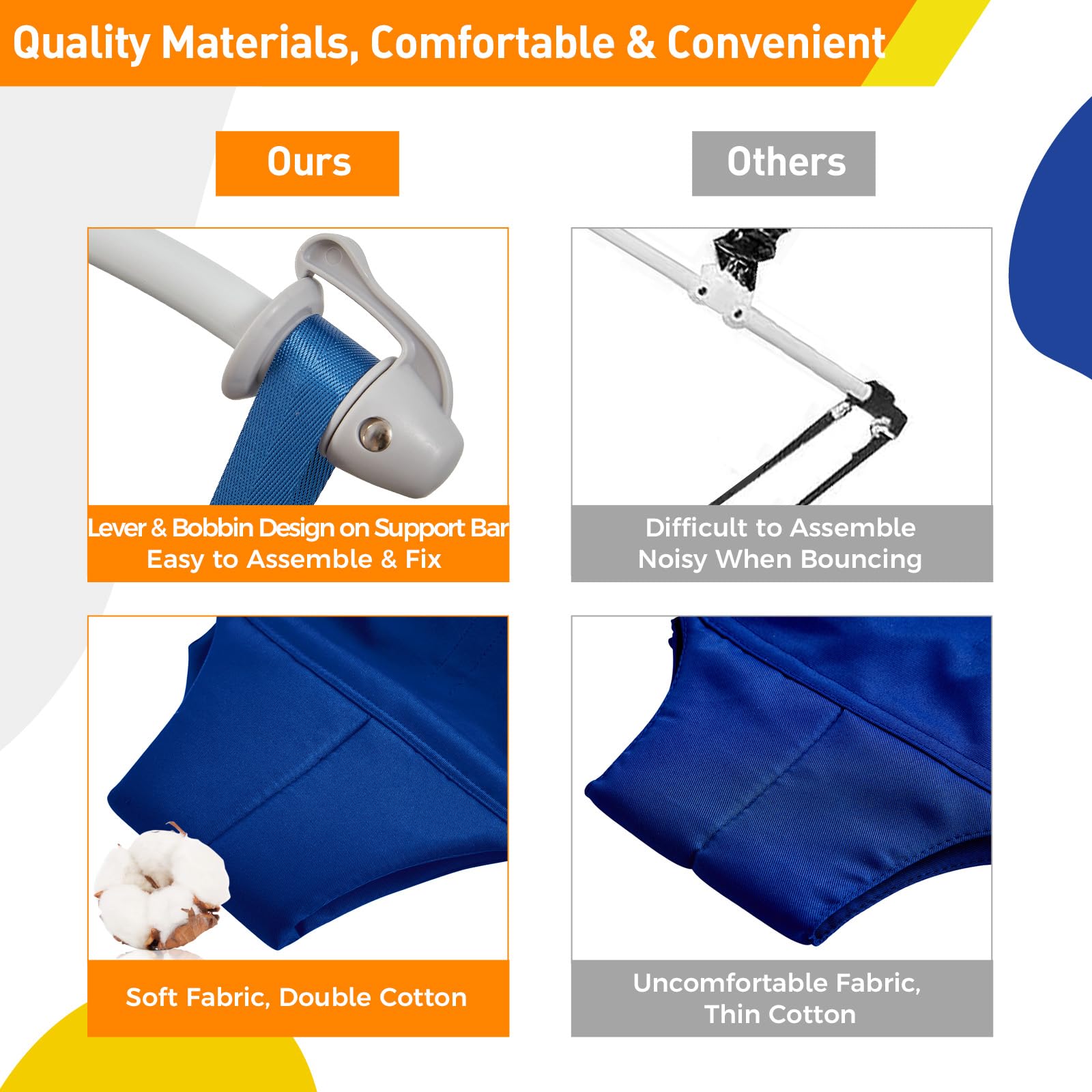 • 【Better Material, Soft & Comfortable】Safety is very important when children play, that's why we strive to make our products safer! Two buckles and adjustable seat belts ensure your baby's safety. Made of soft cotton, it's comfortable for your elder kids to play, while liberating parents' hands. The rotating design at both ends of the support bar makes it easy to assemble, and fix safely. It is lightweight, convenient to store and carry.