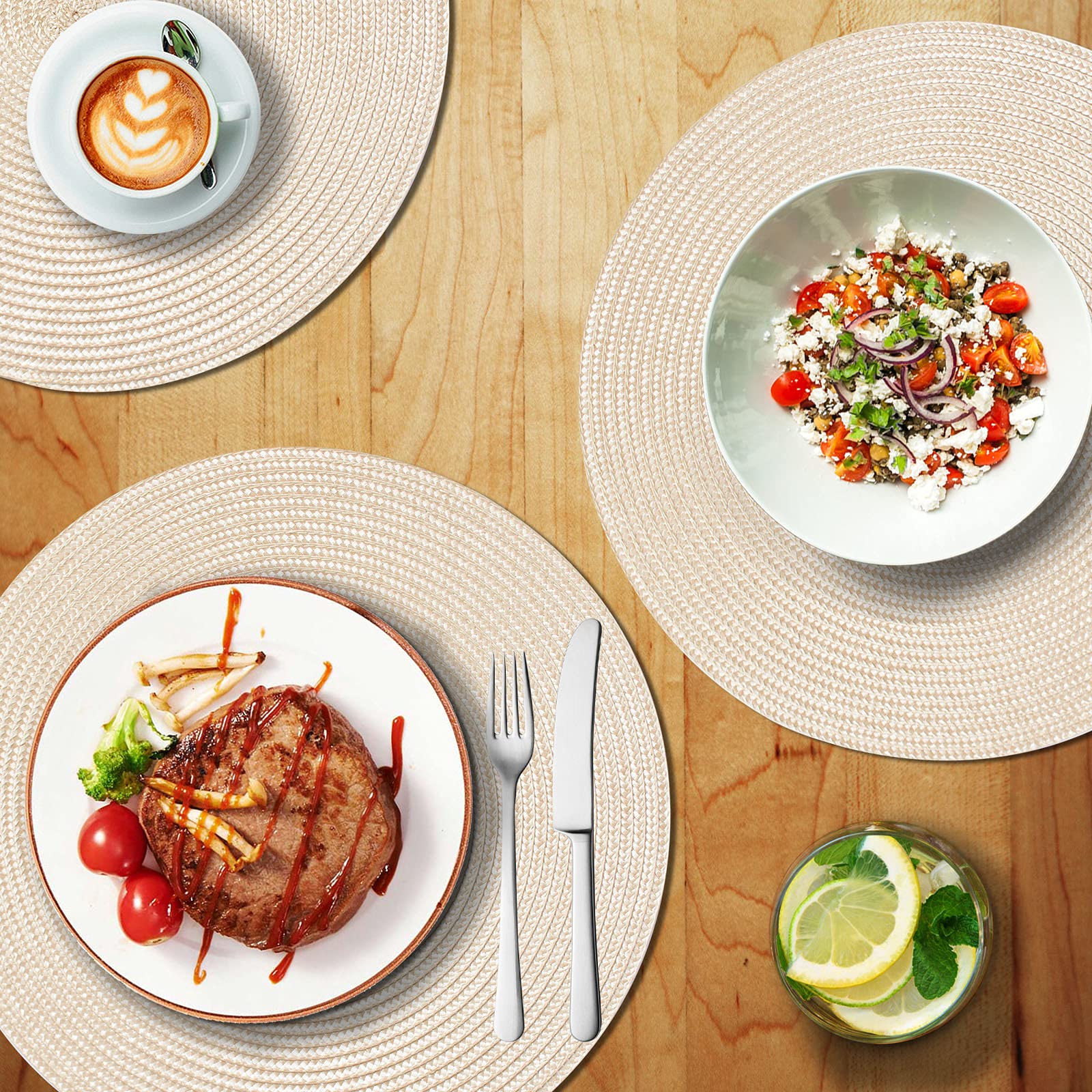 FunWheat Round Braided Placemats Set of 6 Table Mats for Dining Tables Woven Washable Non-Slip Place mats 15 inch for Easter Decoration(Ivory Beige, 6pcs)