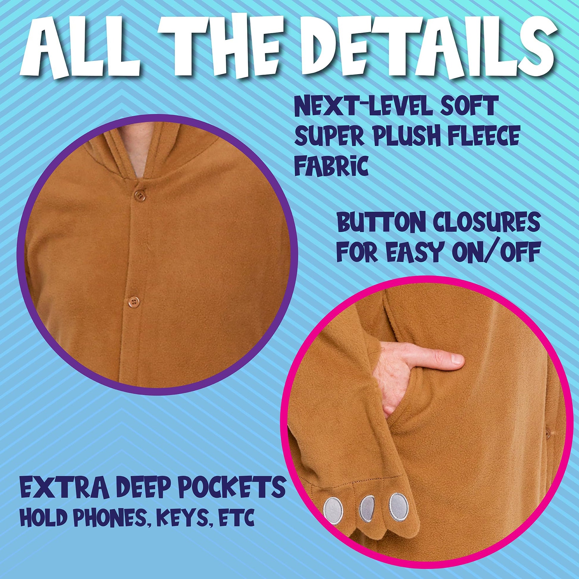• COMFY & COZY - A special blend of comfort and fun, these plush materials are soft to the touch and will keep you warm during those cold winter months. The button up closure allows you to quickly get dressed while the loose fit gives you the flexibility to easily wear over your existing clothes or jacket.