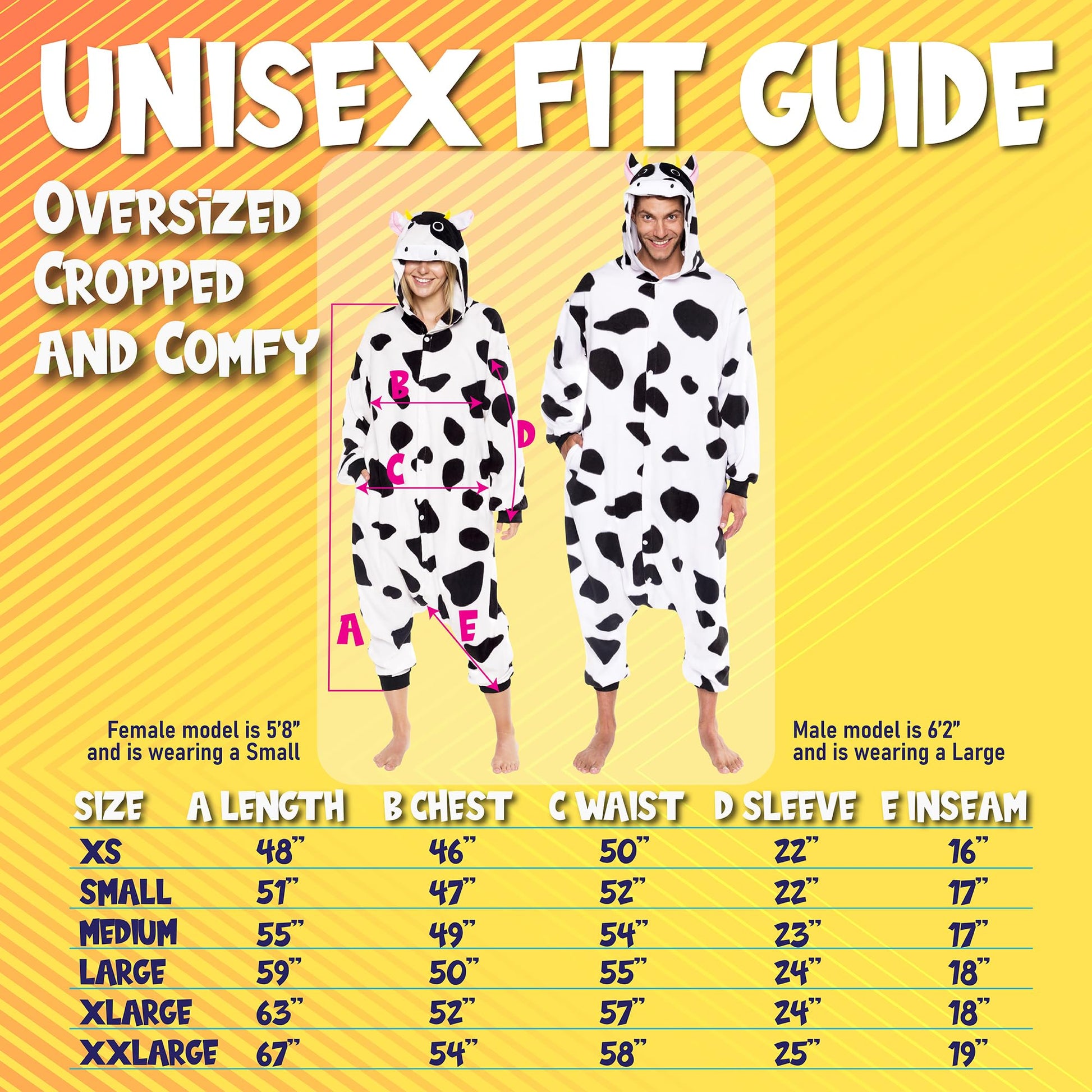 Funziez! Adult Onesie Halloween Costume - Animal Dinosaur Shark - Unisex Plush One Piece Cosplay Suit for Adults, Men and Women (Medium, Cow)