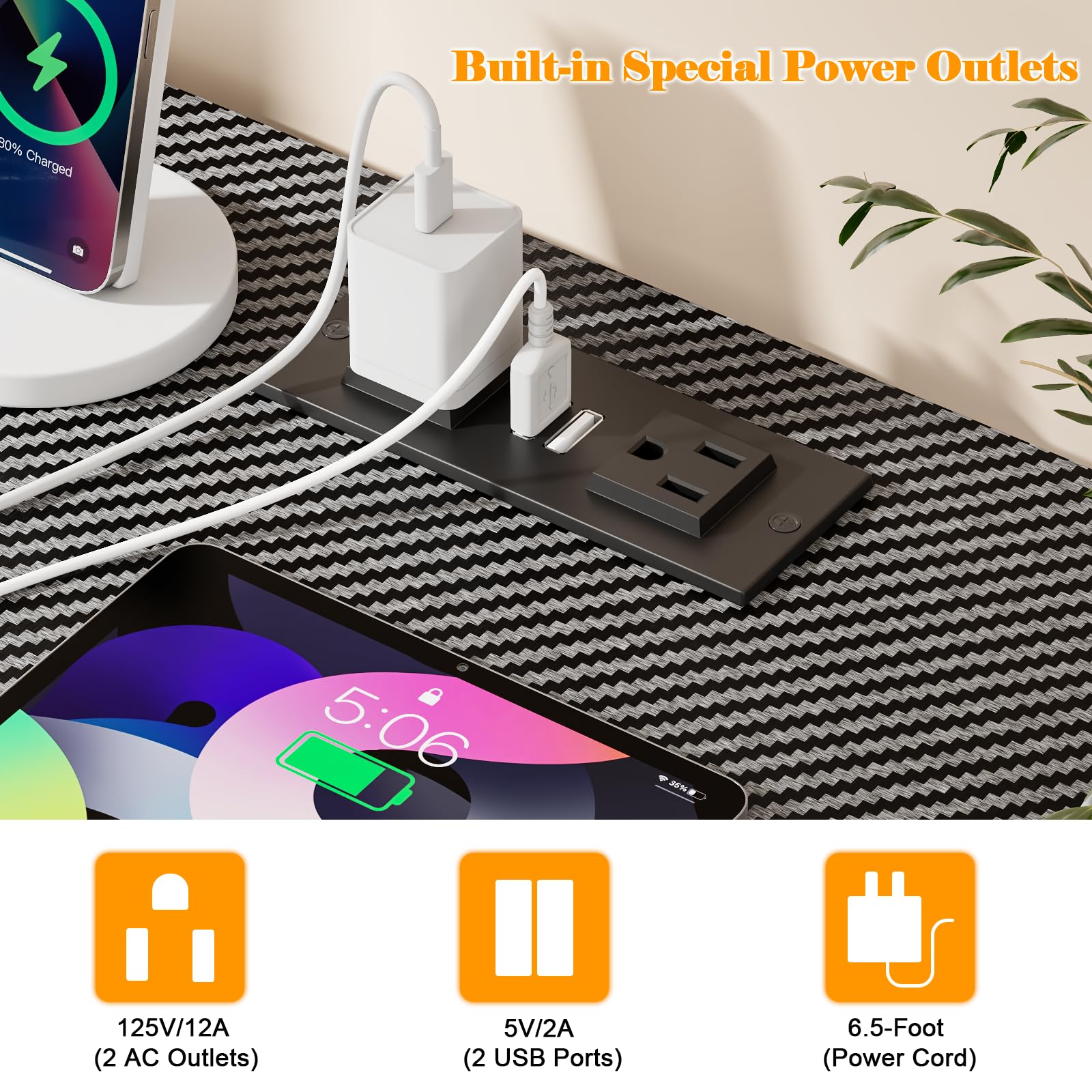 • [Long Gaming Desk with Power Outlets]: The 2 person gaming desk is equipped with a 2 built-in USB charging ports and 2 power outlets for charging phone, tablet, printer, scanner, gaming devices and more, making it a convenient solution for office, workstation, or home use.