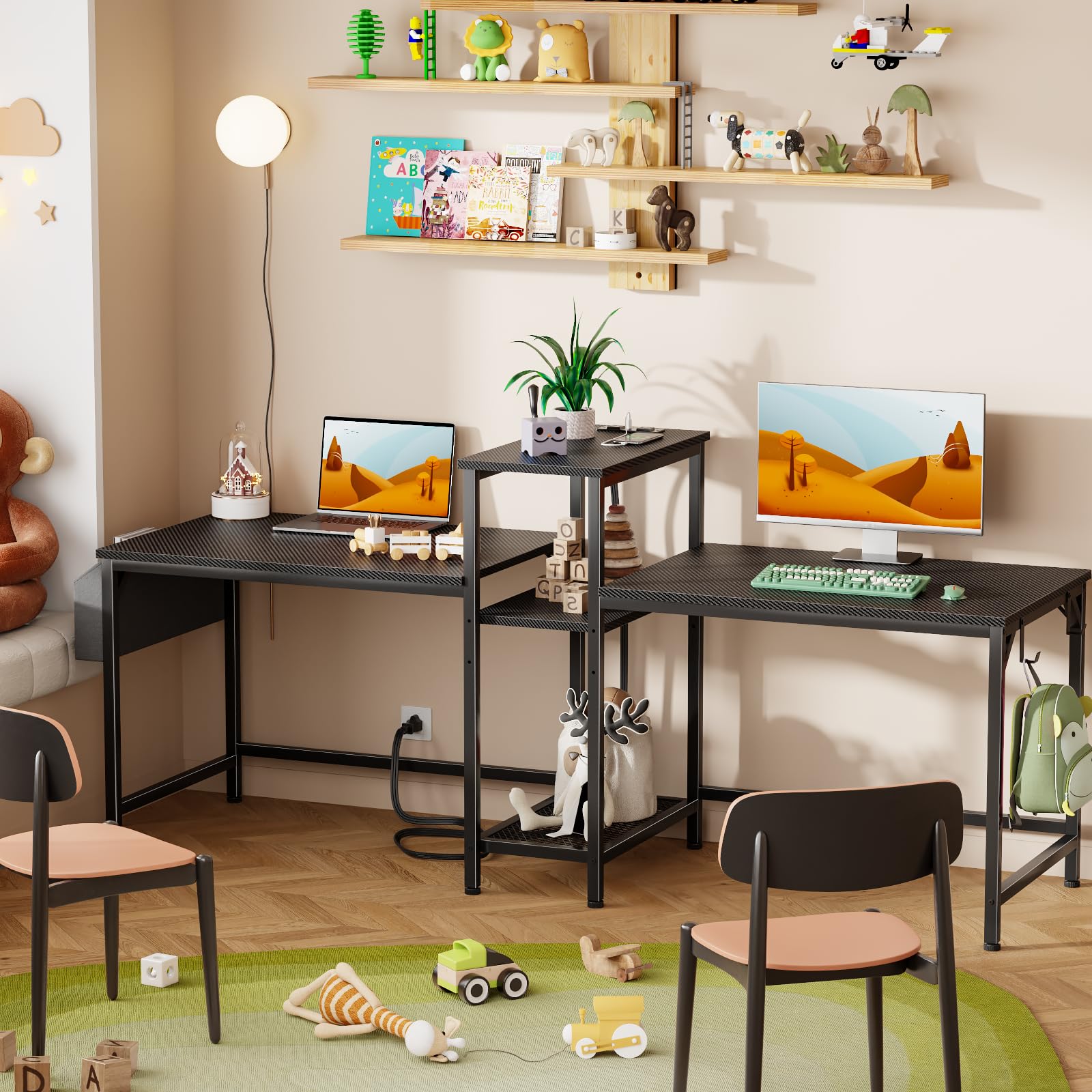 • [Double Desk Design]: This double computer desk can expand the storage space and functions of the work space. 71' long desk allows 2 persons to work side by side individually, without disturbing each other. Suitable for adults, teens, and children for studying, working, or playing games together, providing the perfect workspace solution for all.