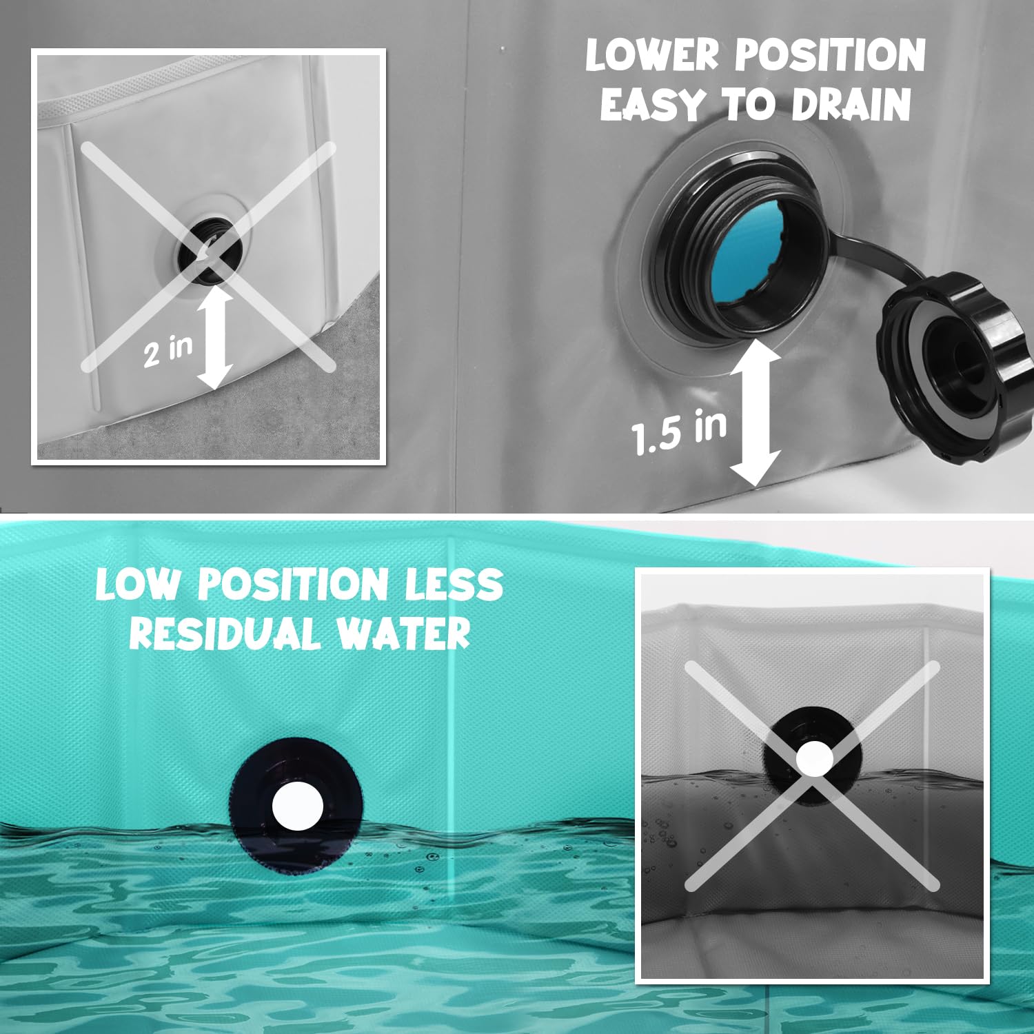 • DRAIN HOLE FOR QUICK RELEASE - Lower drain level and larger outfall for faster release. Mix vinegar, dish soap, and water to wash the inside of the dog bath if necessary. Air dry and store.