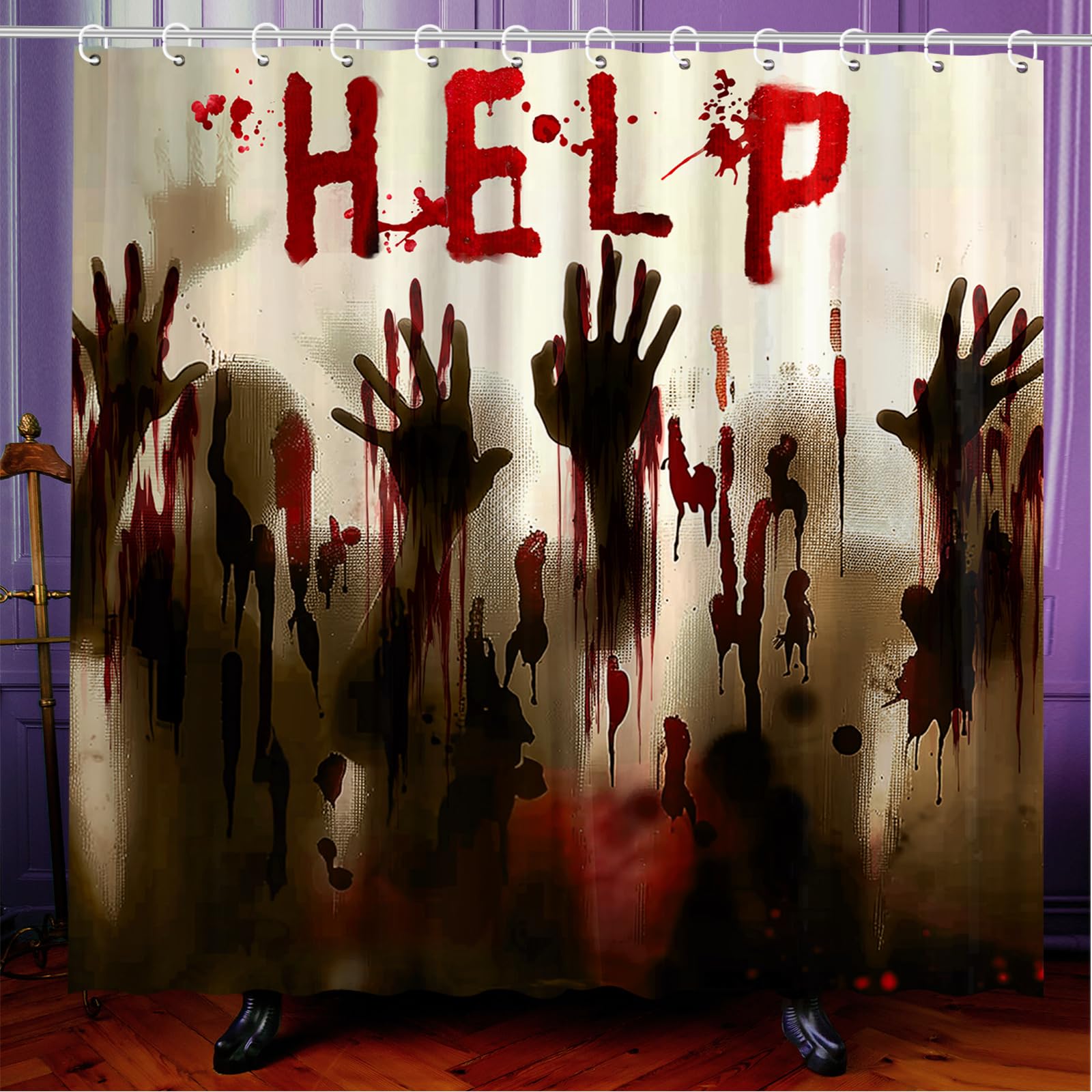 • Halloween Themed Design: create the ideal Halloween atmosphere with this horror themed bathroom set; Each piece features vivid colors and high resolution designs for an intense Halloween atmosphere; Revel in the horror, suspense, and thrill brought by this exceptionally designed bathroom set; The bloody hand prints, scary ghosts, and 'HELP' signs bring a level of festivity that stands out