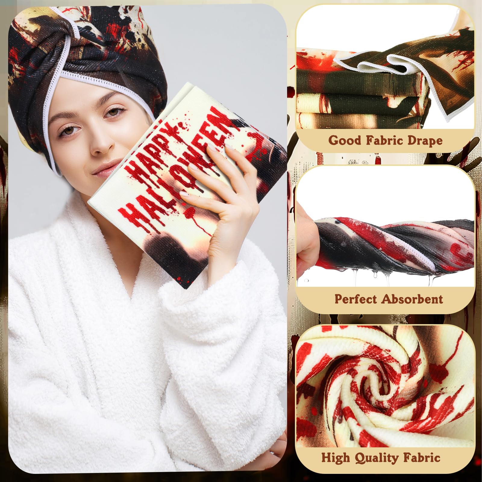 • Complete and Convenient Halloween Bathroom Set: immerse yourself in the Halloween spirit with our comprehensive bathroom set; The package includes 4 towels, 1 shower curtain with 12 hooks, 1 toilet lid cover, 1 bath mat and 1 U shaped rug, all adorned with Halloween themed designs; Our set covers all your bathroom essential needs, adding a touch of festiveness