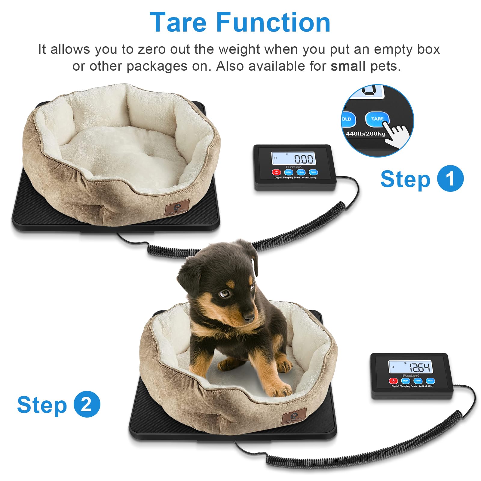 Fuzion Shipping Scale, 440LB x 10g High Accuracy Postal Scale, Hold/Tare Function, Digital Shipping Postal Scale for Packages, Postage, Luggage, Mailing, Battery & AC Adapter Included