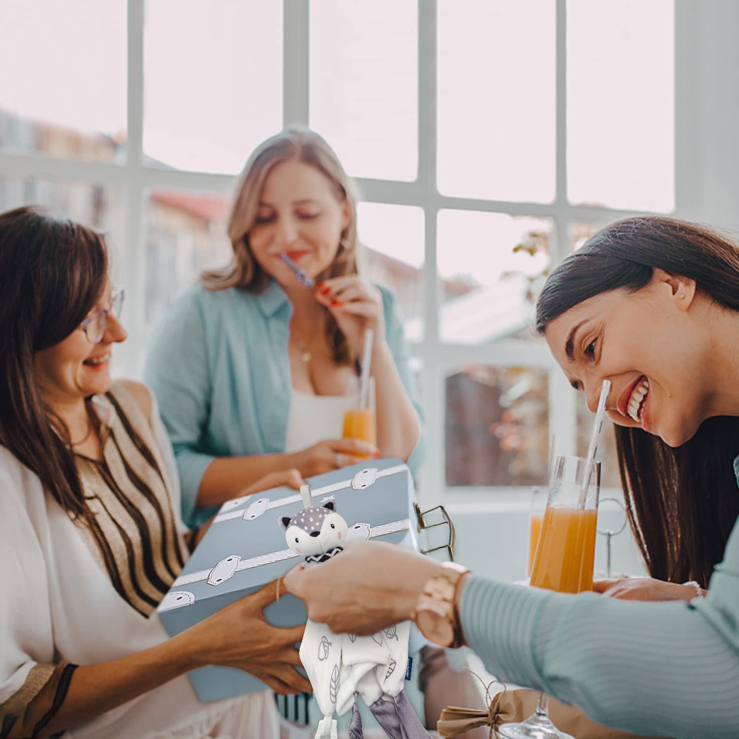 • 【UNIQUE WELCOME BABY GIFT】Our baby gift basket includes 1 * Baby Blanket, 1 * Fox Baby Security Blanket, 1 * Moon Wooden Rattle, 1 * Funny Baby Bibs and Socks, 1 * Hello Baby Greeting Card, 1 * Cardboard Gifts Box. Send this newborn gift basket to a special little one to welcome them into the world