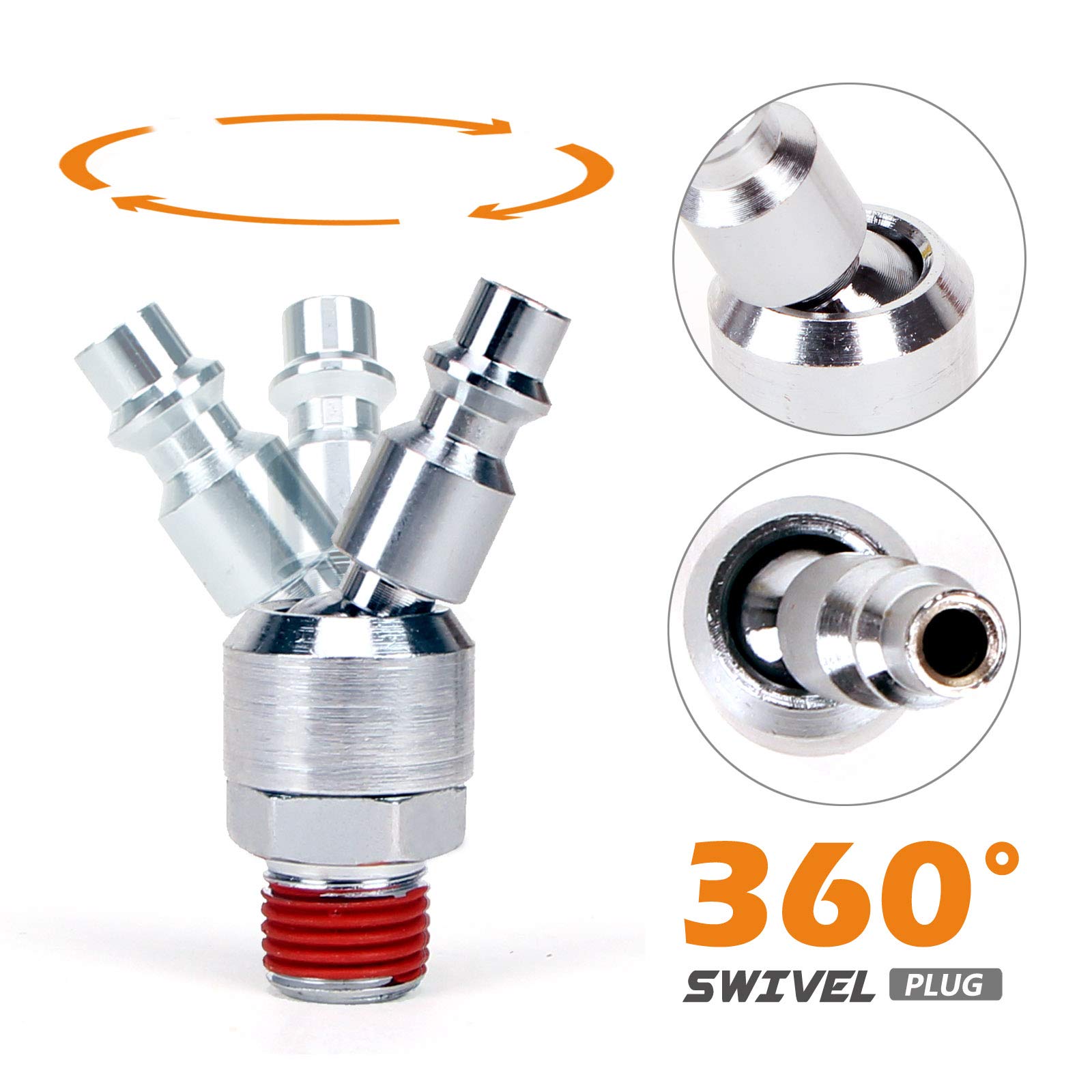 • ➤ Universal Accessories and Attachments – We’ve also provided all the small details to suit your air compressor needs, including tire inflator gauge, 360° swivel connector, swivel plugs, heavy duty blow gun with safety and tapered nozzles, rubber tip, couplings & plugs, and PTFE tape.