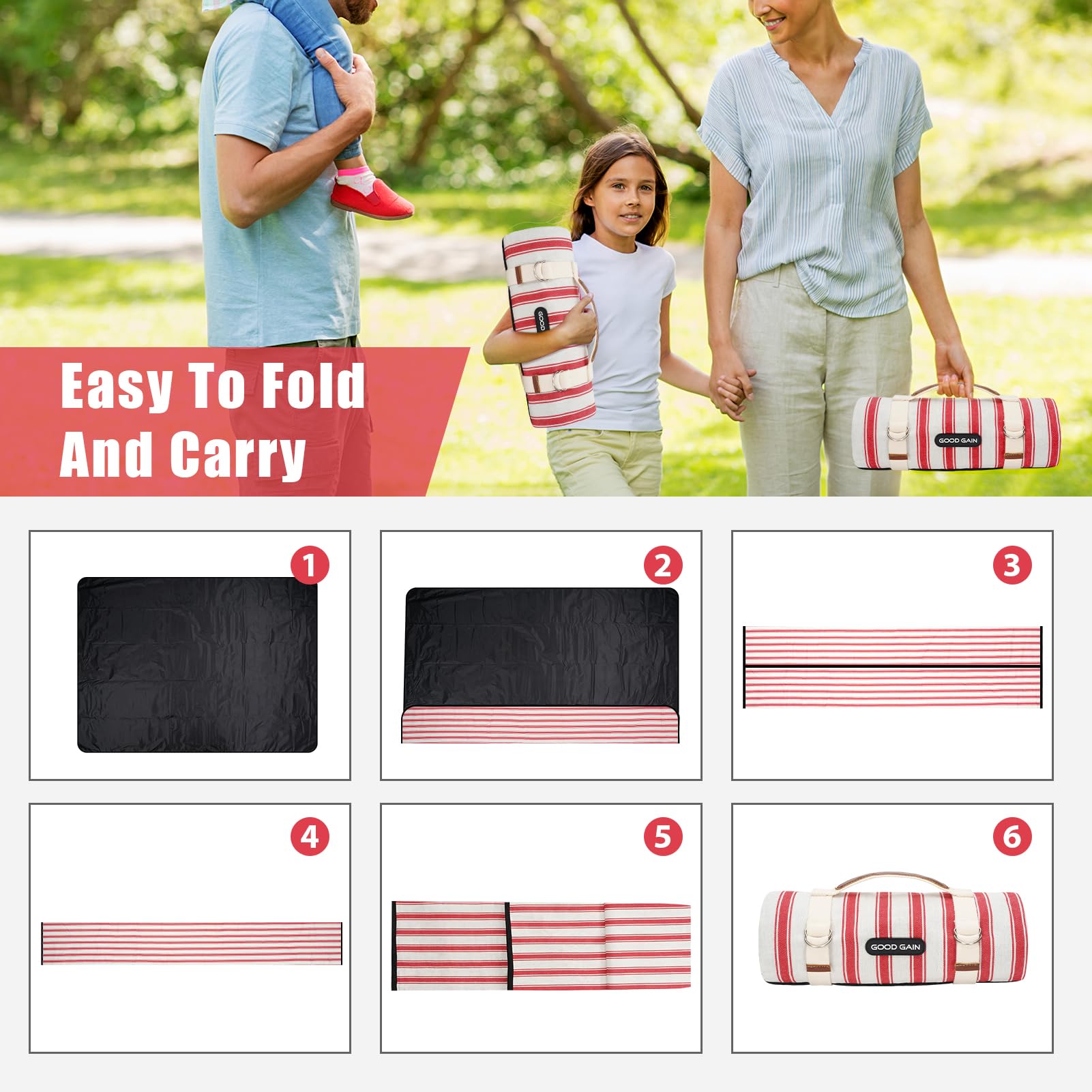 G GOOD GAIN Picnic Blankets Waterproof - Extra Large Outdoor Blanket Sand Free Foldable with Carry Strap for Beach, Camping, Park Grass, Hiking, Travel, Concerts, Indoor(Apple)