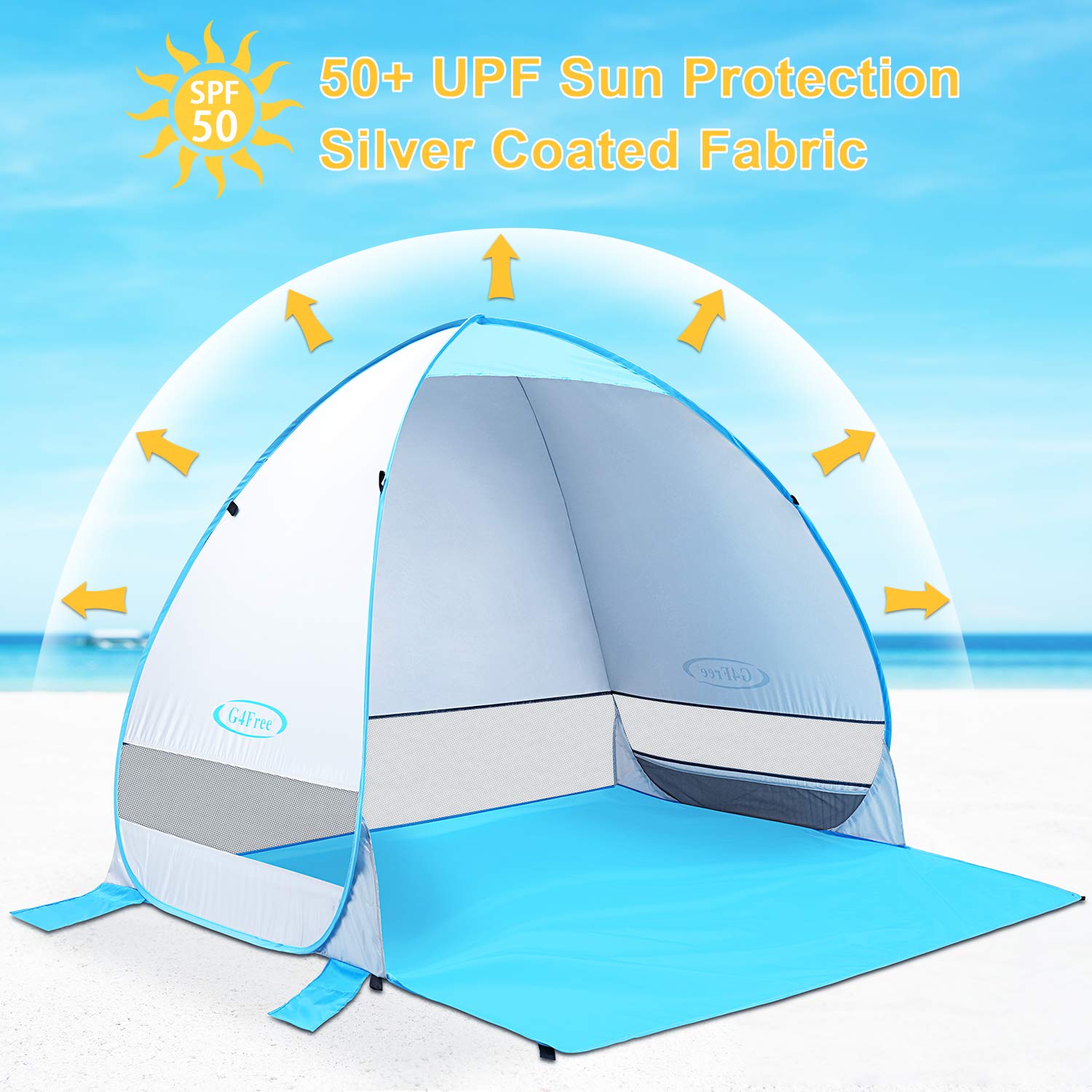 G4Free Large Pop up Beach Tent for 3-4 Person, UPF 50+ Automatic Sun Shelter Canopy Portable Outdoor Cabana Sun Umbrella