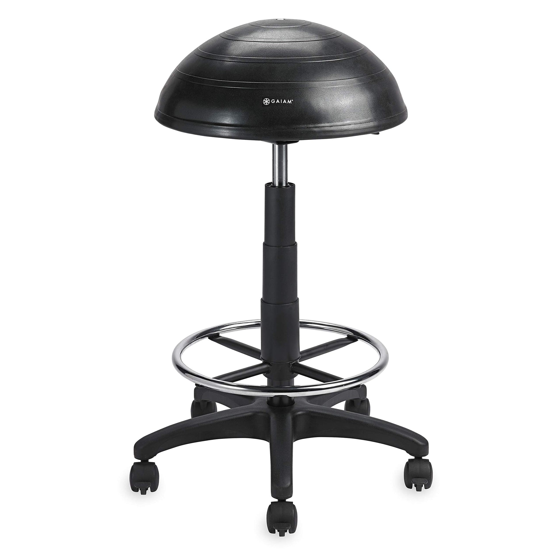Gaiam Balance Ball Chair Stool, Half-Dome Stability Ball Adjustable Tall Office Sit Stand Swivel Desk Chair Drafting Stool with Round Foot Rest for Standing Desks Home or Office - Black 33