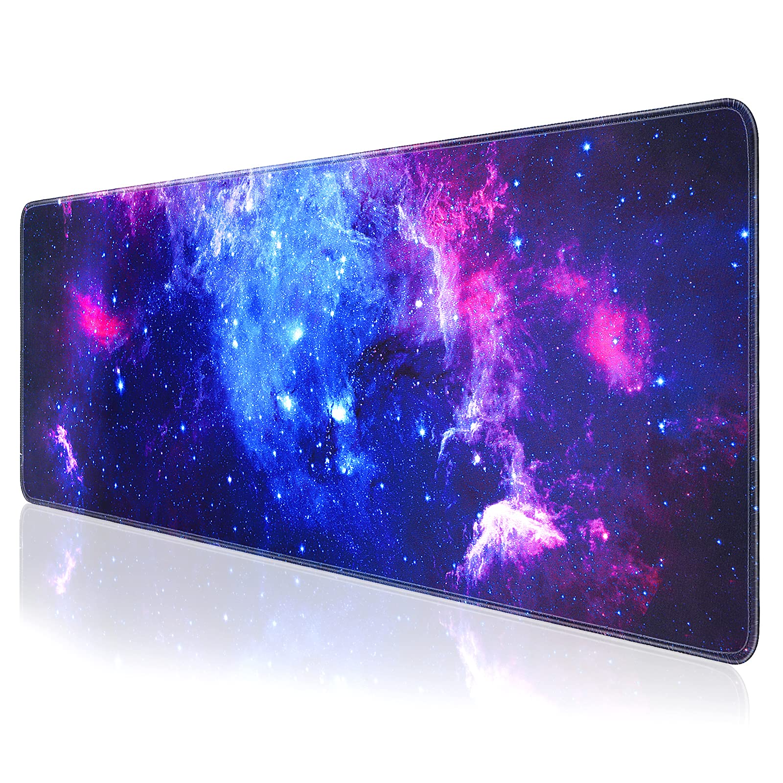• ✔【Wide Applicability】Package:1 Pack XL Large Gaming Mouse Pad in size 800x300, 2mm thickness. Perfect gamer mouse pad for wired/ wireless gaming mouse, mechanical keyboard, laptop and more.If you meet any issues with our Galaxy mouse pad,please let us know, we are always ready to help.