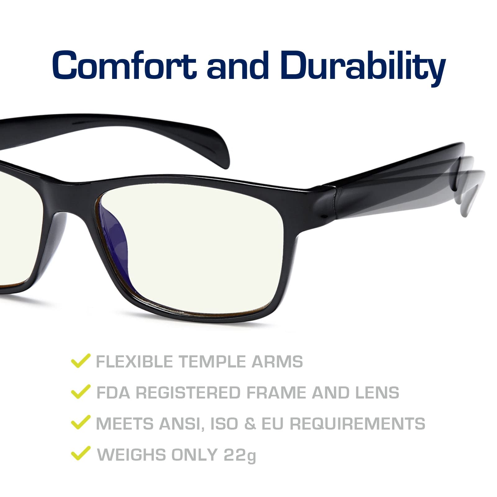 • High End Gaming Glasses Design: Ultra-lightweight and flexible TR90 nylon frame material for durability and comfortable long-term wear. Casual frame design keeps you looking professional and stylish while working or playing video games.
