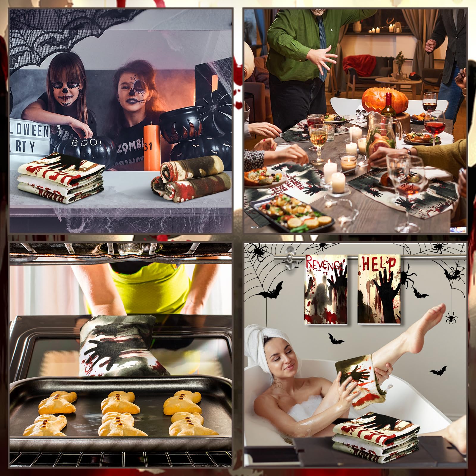 Ganeen 6 Pcs Halloween Kitchen Towels Scary Ghost Dish Towels Bloody Text Hand Towel Horror Zombie Towels 14.2 x 21.3 Inch for Decorative Bathroom Guest Holiday