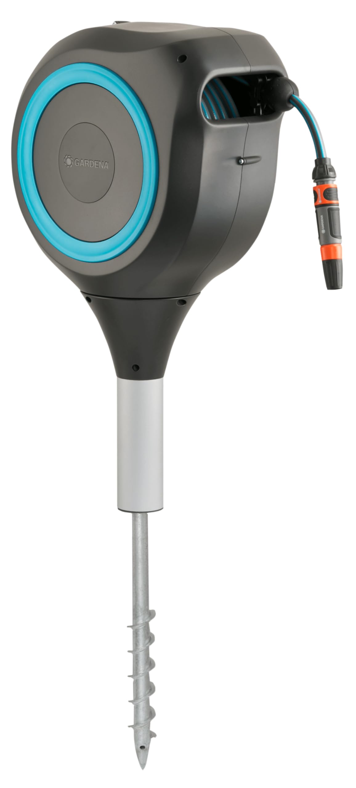 GARDENA 18614-80 | 66' x 1/2" Automatic Retractable Garden Hose Reel on Metal Spike, Outside Garden Hose with 360° swivel Rotation to Reach All Areas of Your Yard. Relocate Hose Reel Easily