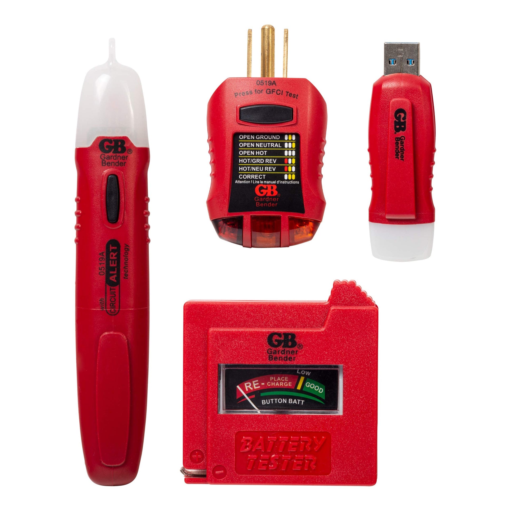 Gardner Bender Household Electrical Tester Kit; Battery, GFCI, Non-Contact Voltage, and USB Testers
