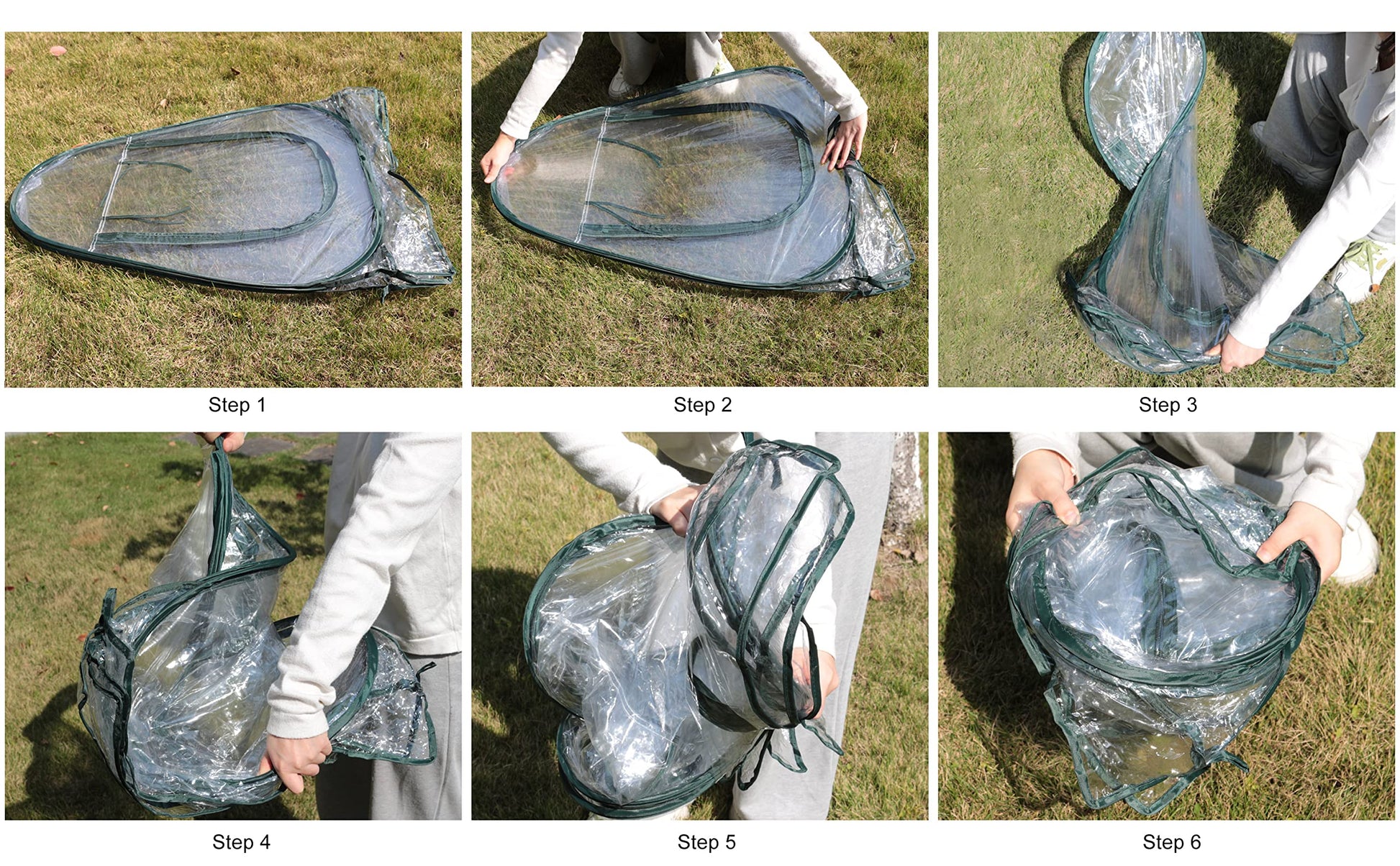 • Pop-up Design - The small greenhouse is made with environmental PVC material, non-toxic to plants. It pops up within two seconds, no assemblely required. When not in use, it can be folded flat.