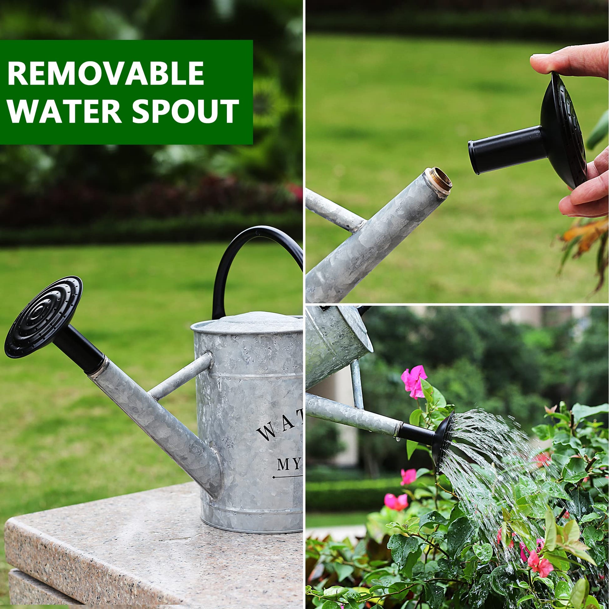 Garutom Galvanized Watering Can for Outdoor Indoor Plants, 1 Gallon Decorative Countryside Style Water Can with Removable Spout, Perfect Metal Watering Can for Indoor Plants and Garden Flower