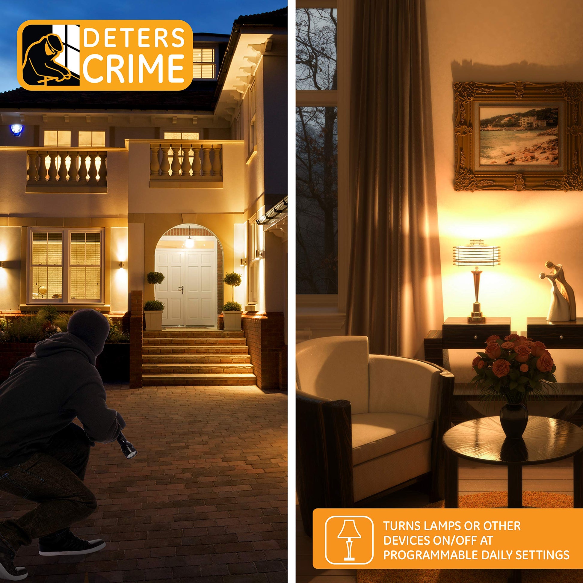 • Light Timer - Ideal for your security lights, landscape, patio and seasonal lighting. LED, CFL, Incandescent and Halogen compatible