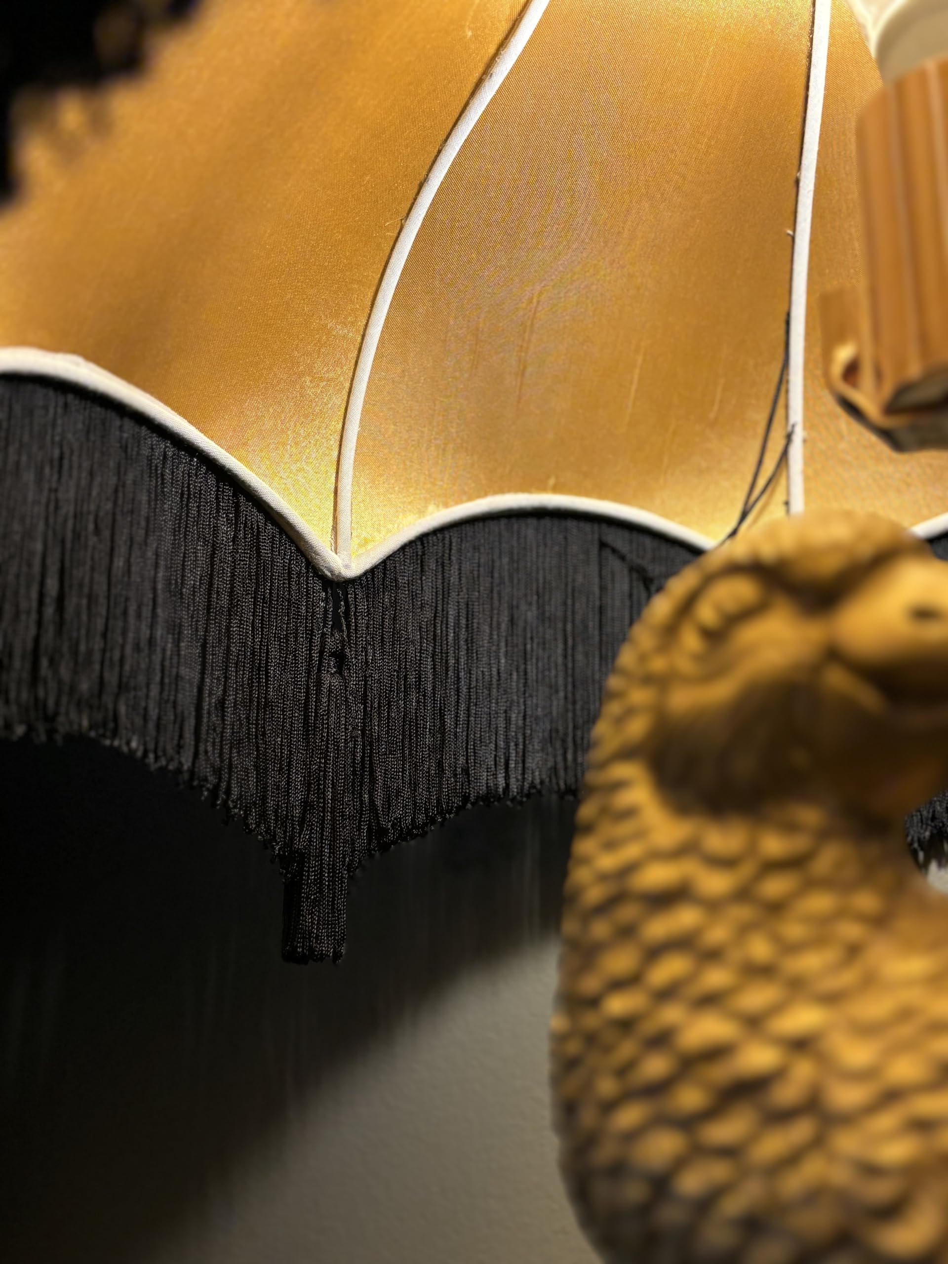 Details: Carefully made by hand, this beautiful classic Victorian lamp shade is decorated with attractive tassels and fringe. This piece of art adds a touch of luxury and distinction to your lamp base and will illuminate any room in your home. The gold silky inner lining provides you with a beautiful and romantic warm tone.