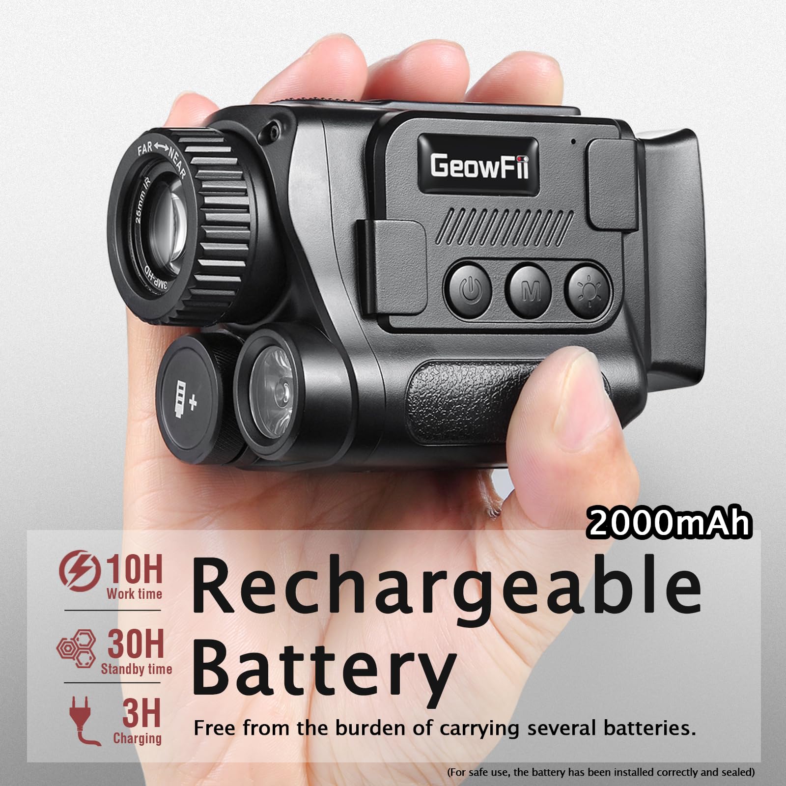 • 4K Upgraded & Practical—— GeowFiiTech Night Vision Monocular features a 4K version with a 25mm multi-coated lens, enhancing imaging for day and night use. With 4K video, 40MP photos, and essential functions, this monocular night vision meets outdoor needs effectively