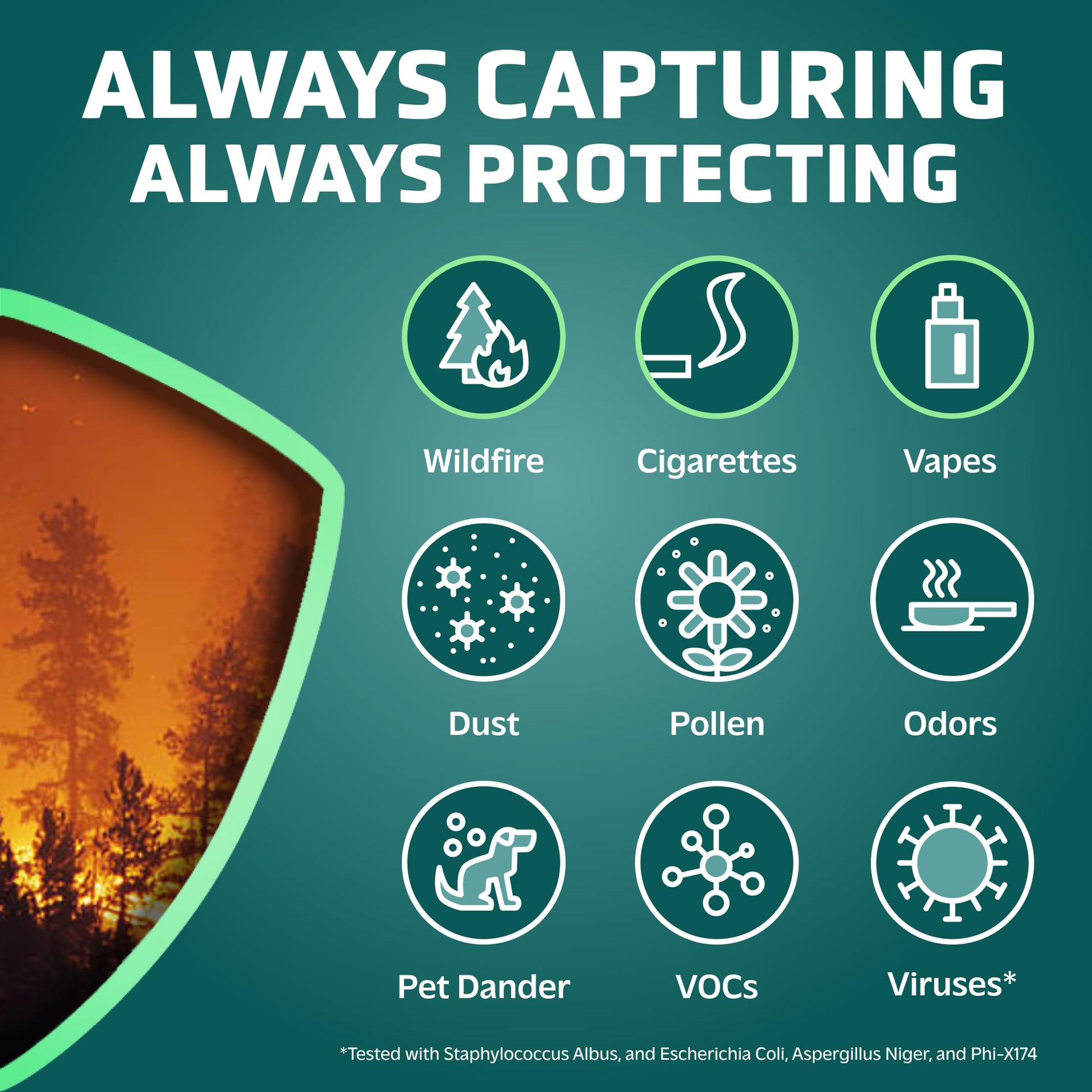 NUETRALIZES SMOKE ODORS: Enhanced with an additional layer between the HEPA filter and carbon filter, effectively reducing smoke and fume odors caused by cigarette smoke, cooking, wildfire smoke, and car fumes.