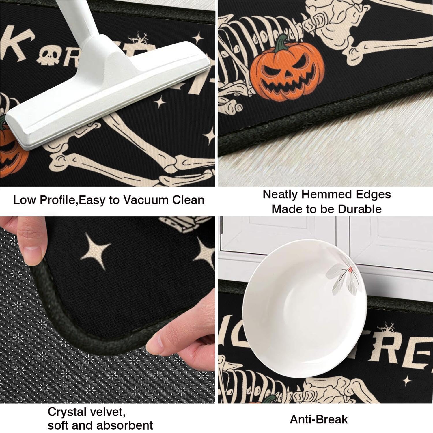 Ghroiep 2 Piece Halloween Kitchen Decor Rugs Set,Skeleton Kitchen Rugs and Mats Non Skid Washable Absorbent Kitchen Accessories Decoration Floor Mats 17"x47"+17"x30"