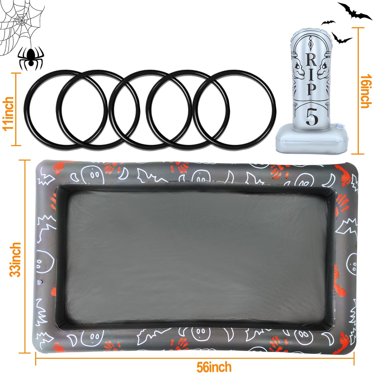 • Great Size for Carnival Games: Inflatable tombstone ring toss game Large Size 56x33 inches. 10 in 1, This set includes 1 Inflatable base , 5p Movable tombstone and 4 plastic toss rings. There have 5, 10, 20, 50,100 points,you can start a competition