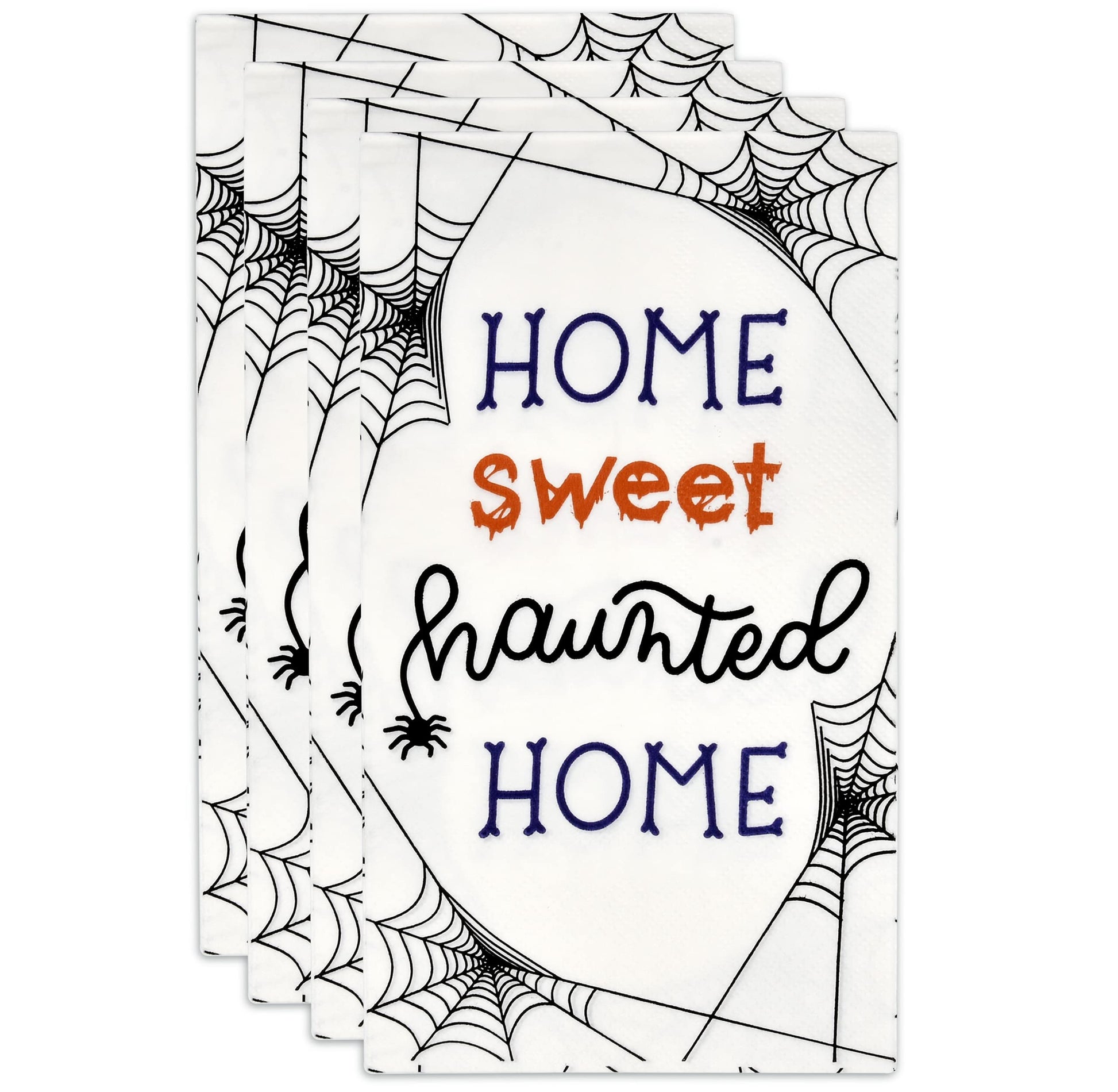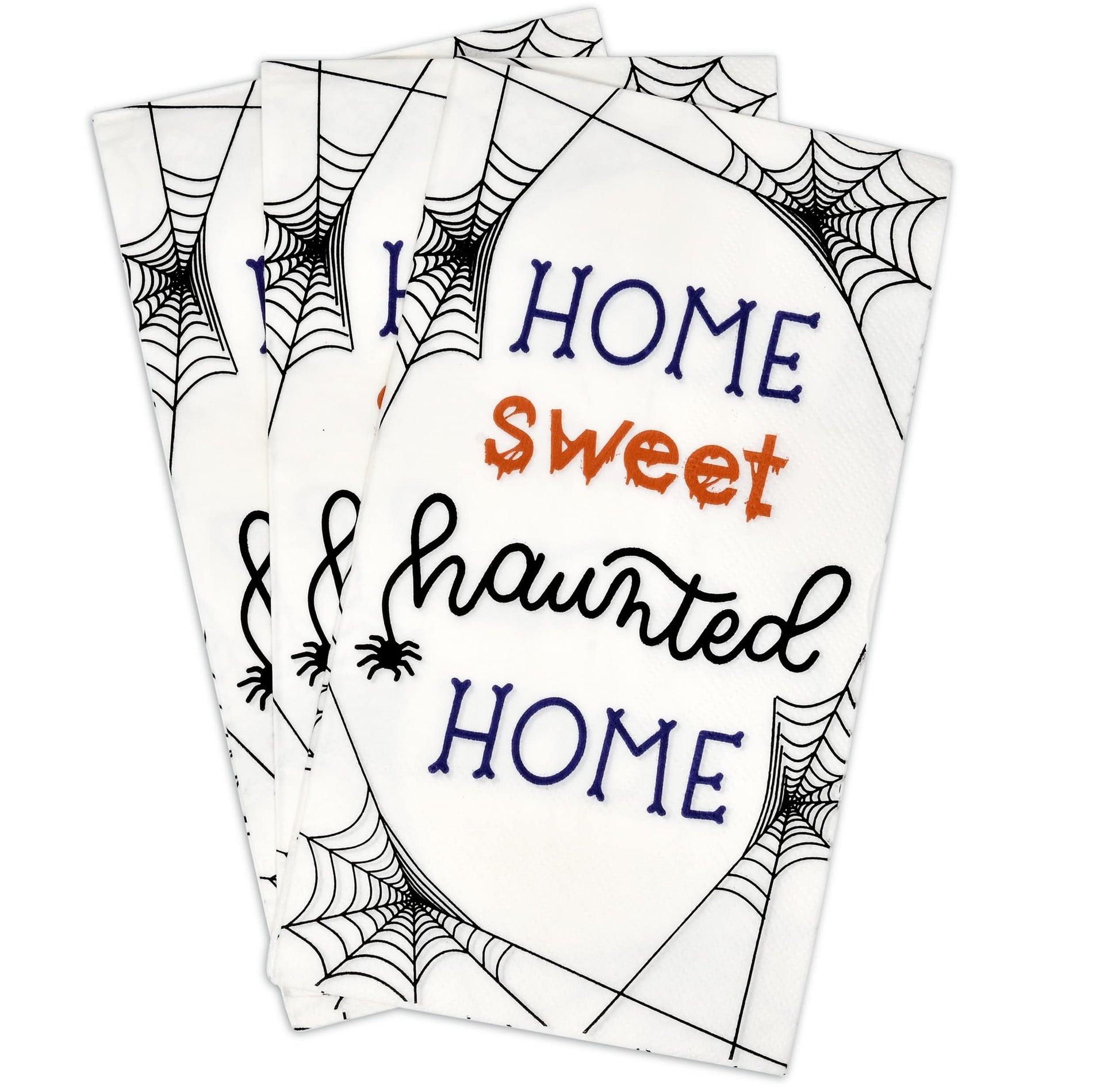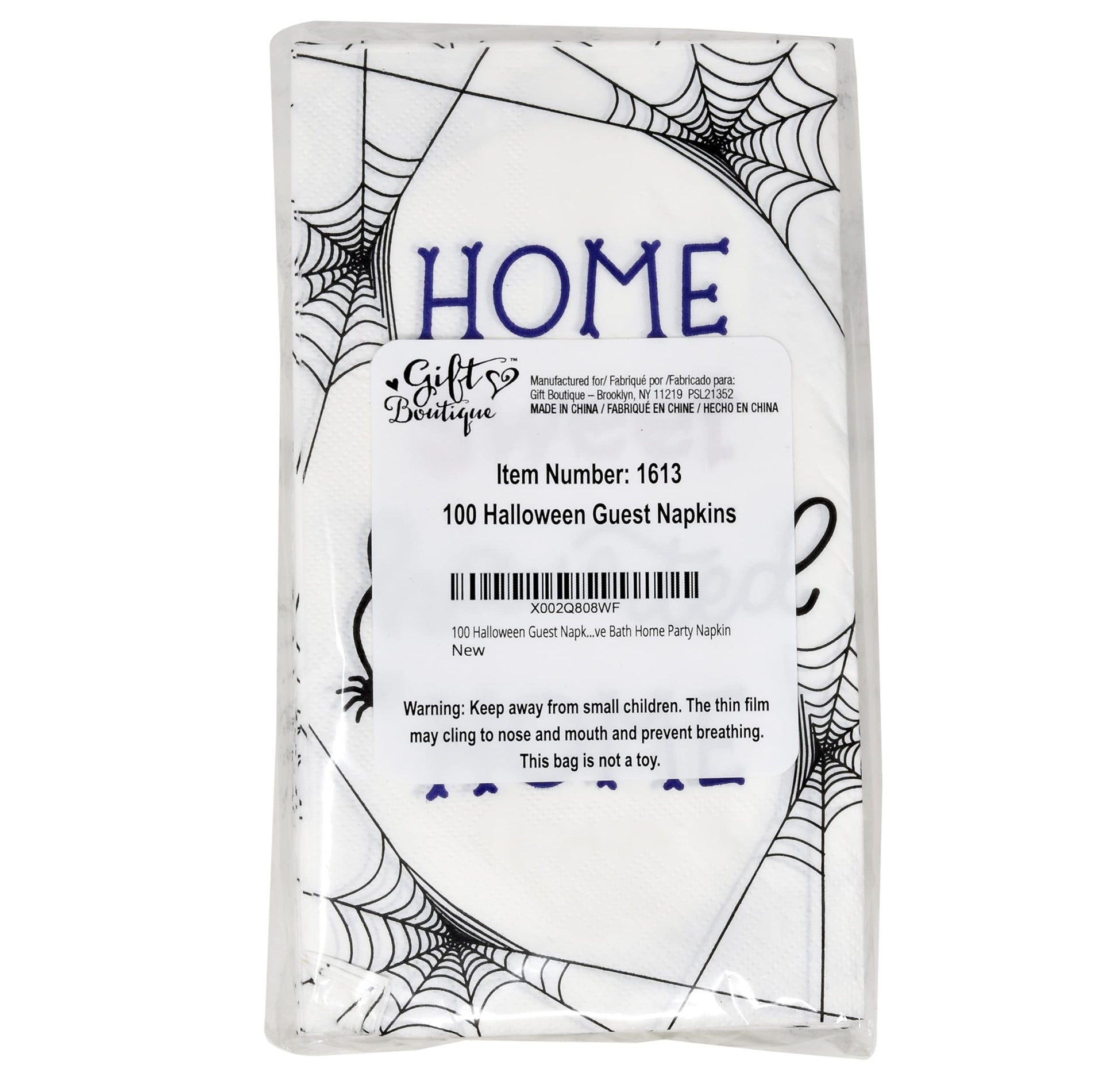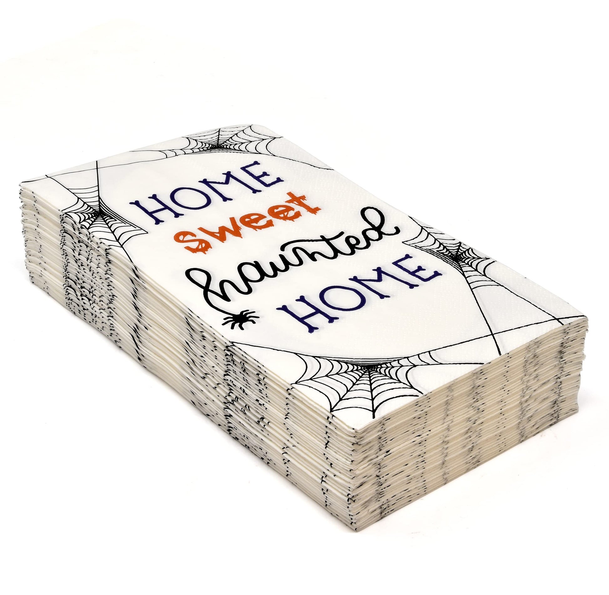 • Halloween Guest Napkins: Gift Boutique Halloween guest napkins includes 100 dinner napkins featuring Home Sweet Haunted Home with a spider border on a white background