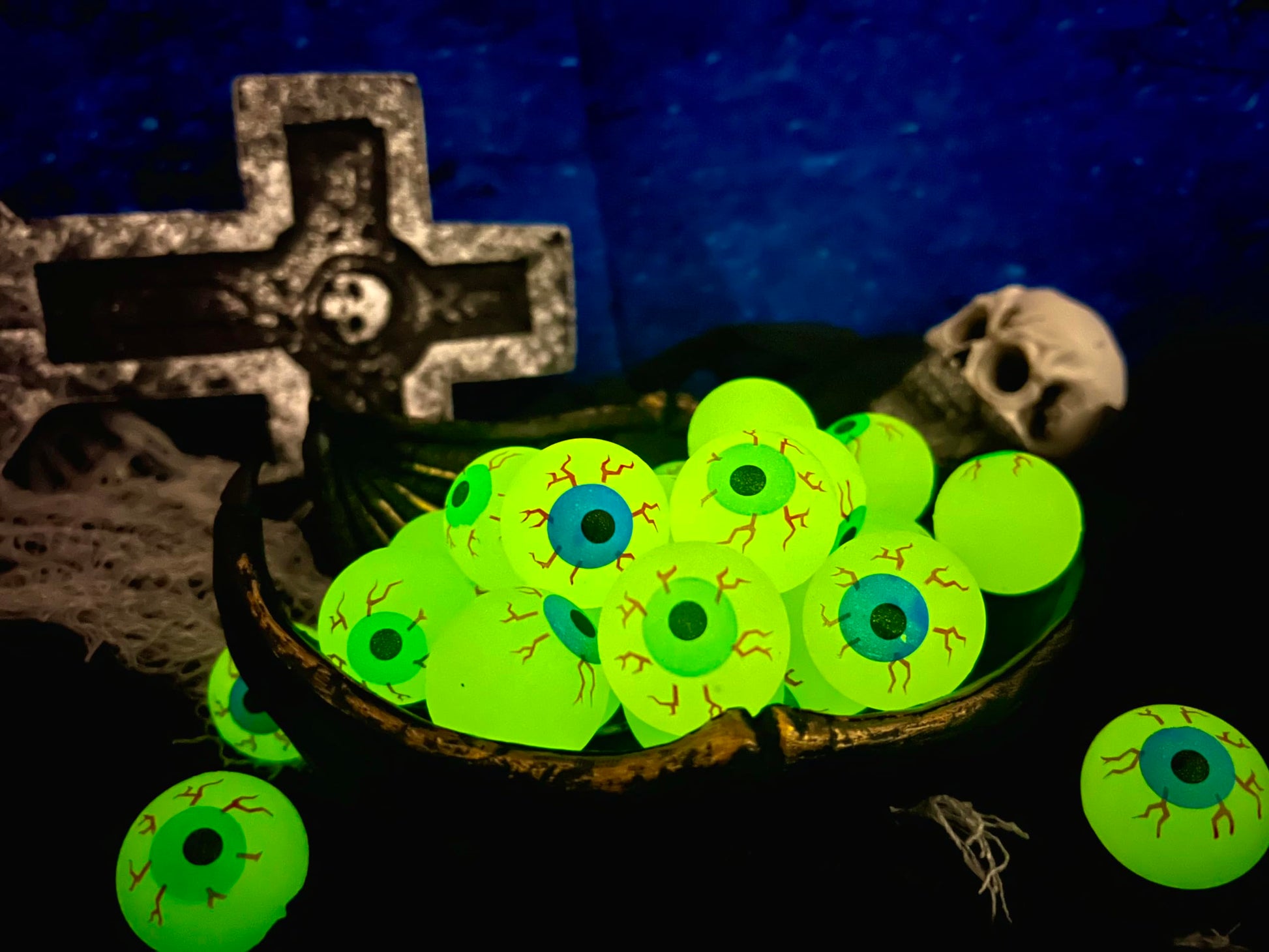 • Glow in the dark Halloween eyeballs