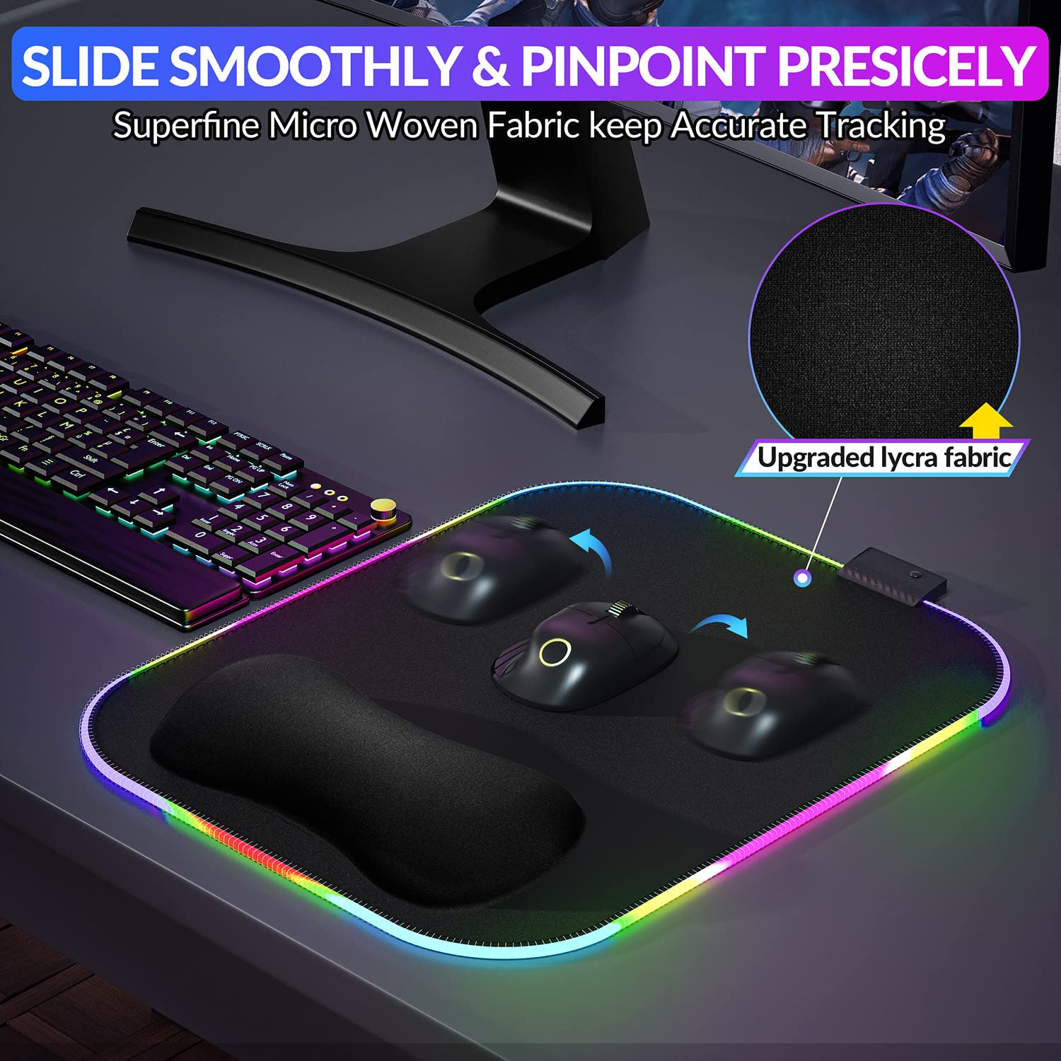 Gimars RGB Mouse Pad with Wrist Rest Support,12 x 10 inch Extra Large Ergonomic Gaming Mouse Pad with 10 LED Lighting Modes, Non-Slip Rubber Base, Lycra Fabric for Laptop, Computer, PC Gaming & Office
