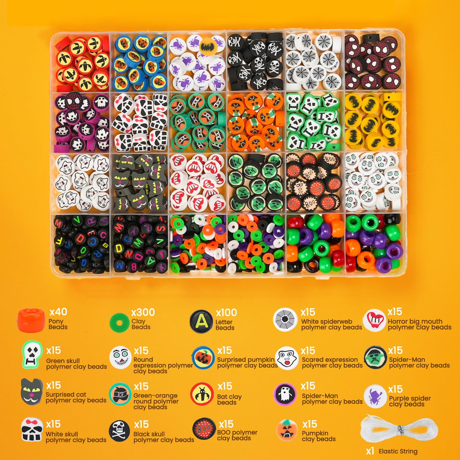 • 🧙 Endless Crafting Possibilities: Includes a wide variety of beads- patterned Halloween polymer clay beads, letter beads, pony beads. Whether it’s bracelets, necklaces, or charms, your child can bring any spooky idea to life!