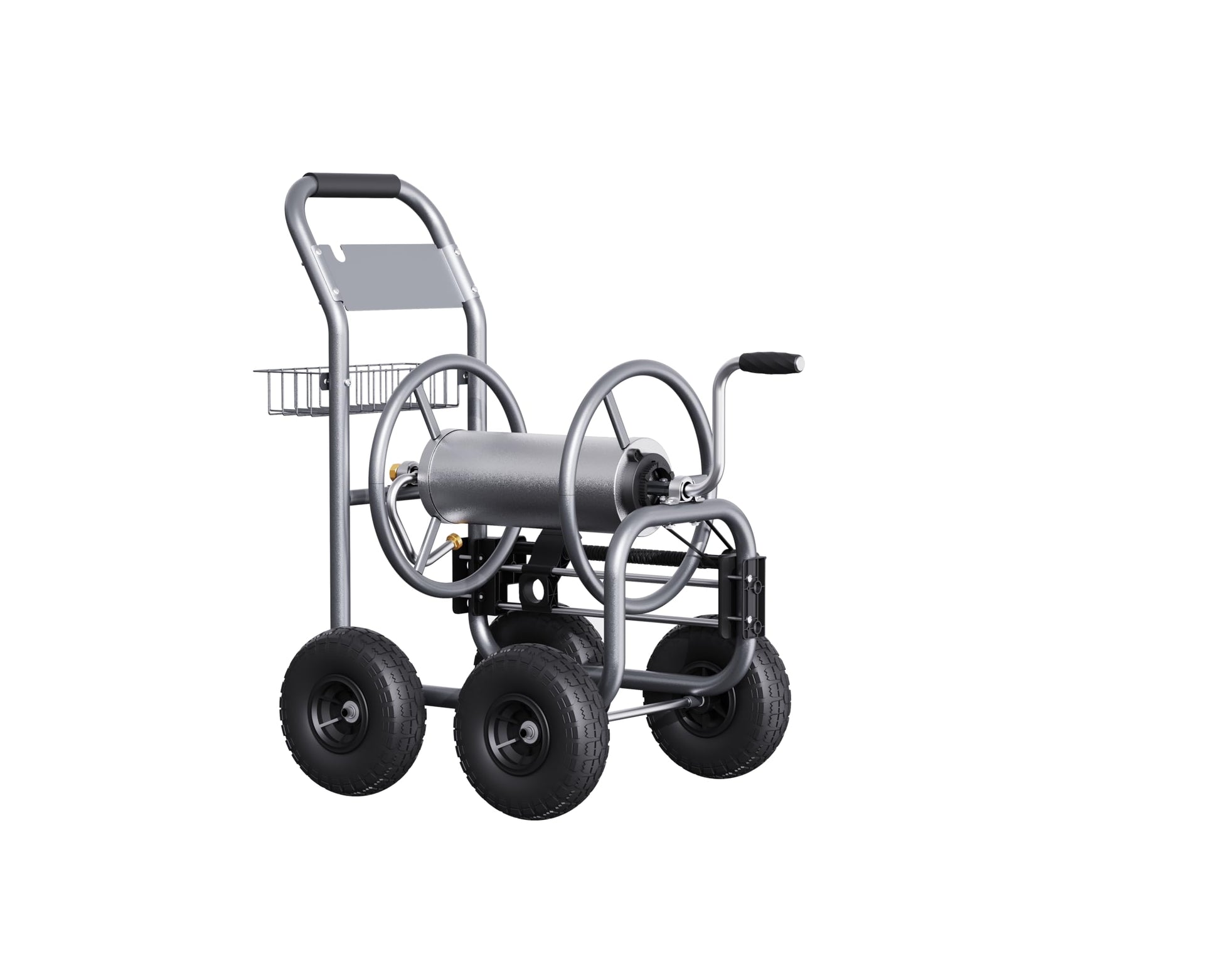• 4 WHEEL HOSE REEL CART: Equipped with 4 wheels, which allows for easy mobility over any terrain. Especially user-friendly for elderly.Storage basket available to have gardeing tools in storage, which is designed for purpose of space saving and convenience.