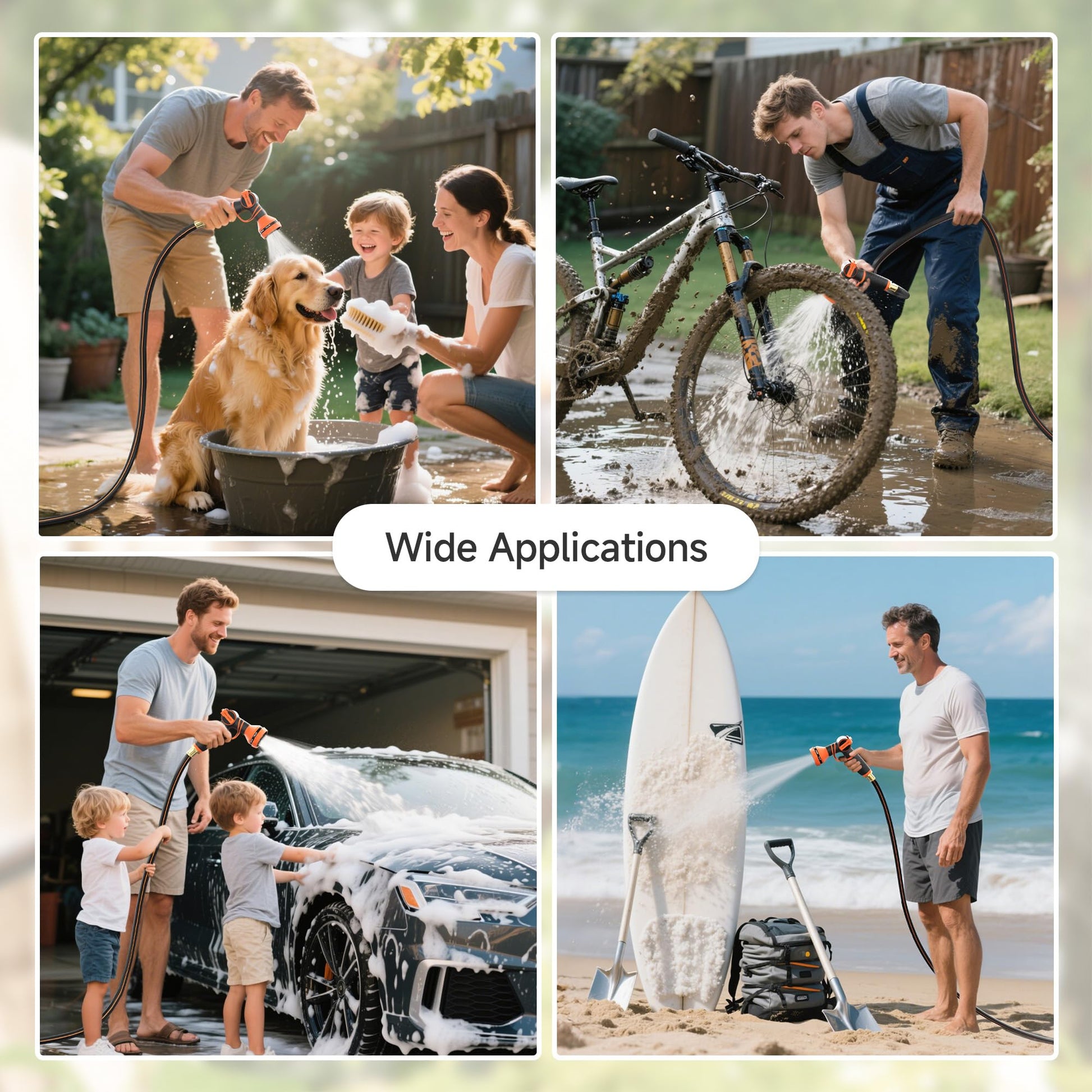 • 9 Adjustable Spray Patterns: Garden Hose nozzle supports 9 patterns to fulfill your different watering purposes. Can be used for car washing, watering, cleaning, pet bathing, etc.