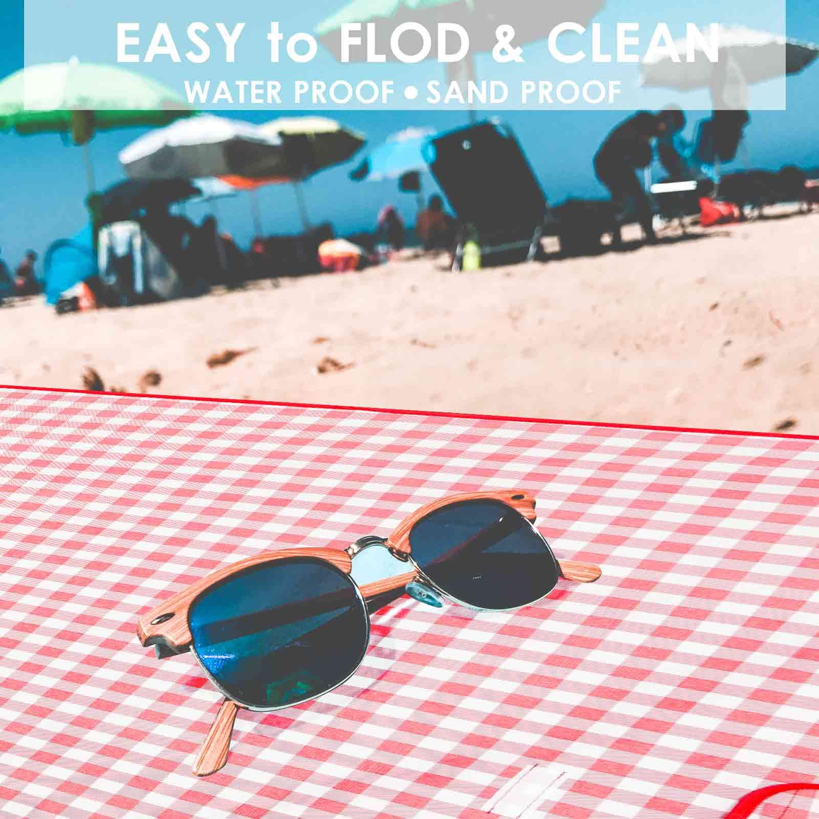 • WATERPROOF & SANDPROOF: Our picnic blanket is completely waterproof & sand resistant thanks to it’s PVC waterproof backing. You can use it wherever the ground is damp like on grass, just give it a gentle shake and all the sand would slide off easily
