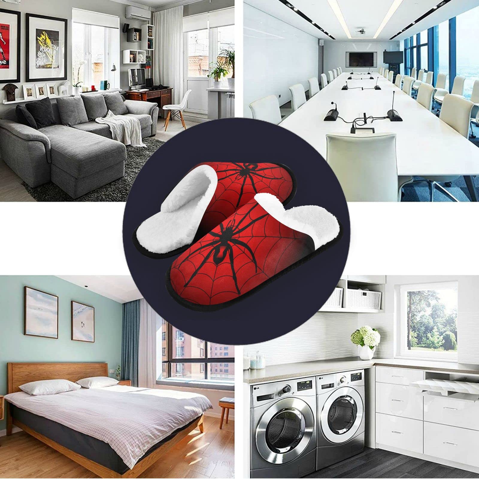 Glaphy Halloween Spider Web Red Black Slippers for Men, Memory Foam House Slippers, Non-Slip Indoor Outdoor Winter Bedroom Shoes, 9-12