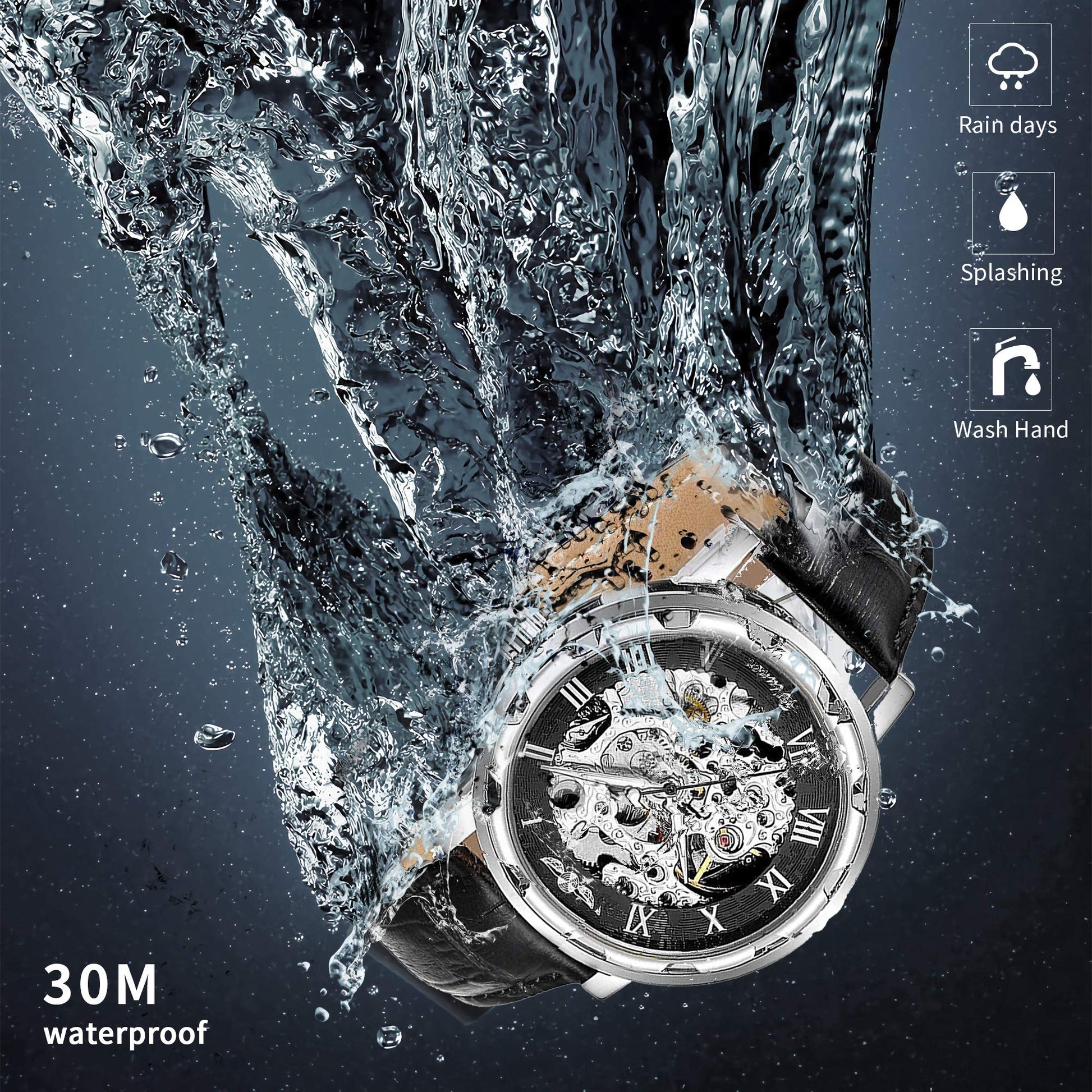 • ❤3ATM WATER RESISTANCE❤ Men casual sport dress watch is protected up to 3 ATM (30 meters/98 feet), withstands hand-washing or splashes water for daily lift, not suitable for swimming or shower
