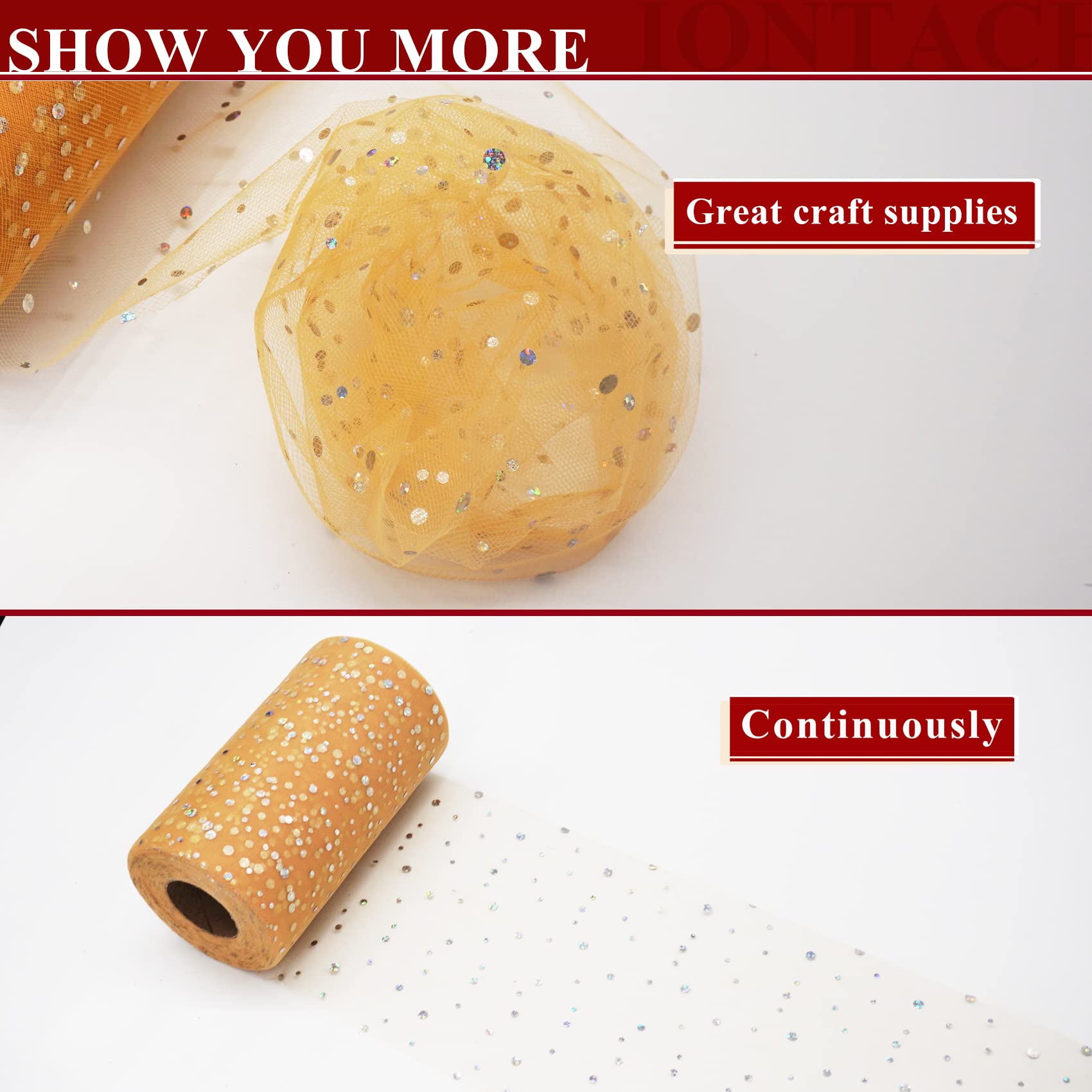 • The stunning glitter tulle. Measuring 6 inches in width and 50 yards sizes ( 150FT ), Whenever it comes to adding extra fun and shine to your crafts and decor, you can never go wrong with sequin tulle roll