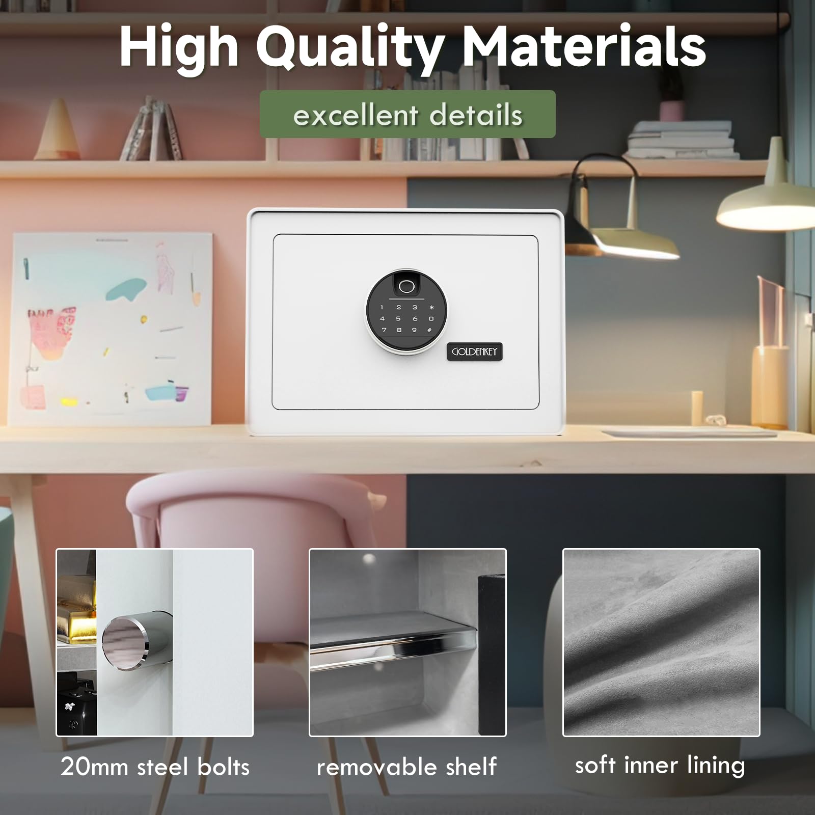 Goldenkey Luxury Jewelry Safe with Fingerprint&Keypad Lock, Document Safe Box with Soft Velvet Lining, Removable Shelf, High Security for Home Office, Hotel, 1.2 Cu.Ft.