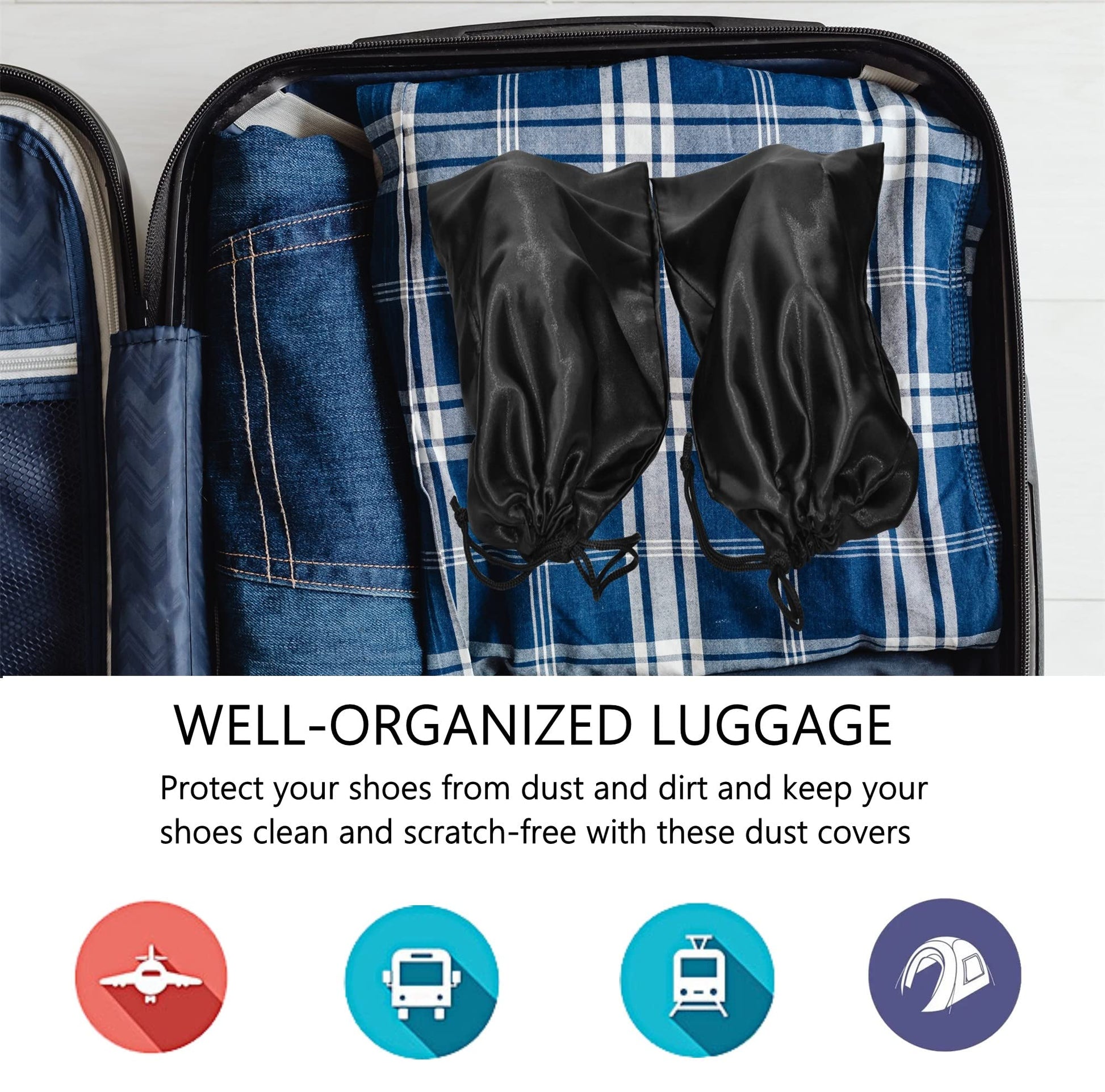 【HIGH QUALITY MATERIAL】These dust bags for shoes are made of soft breathable Thick Satin Fabric which is dust-proof and moistureproof,to protect your shoes from damage, can store shoes for a long time, and will not harm them,Shoe Storage Bags are the perfect solution for storing and protecting your shoes during travel or everyday use