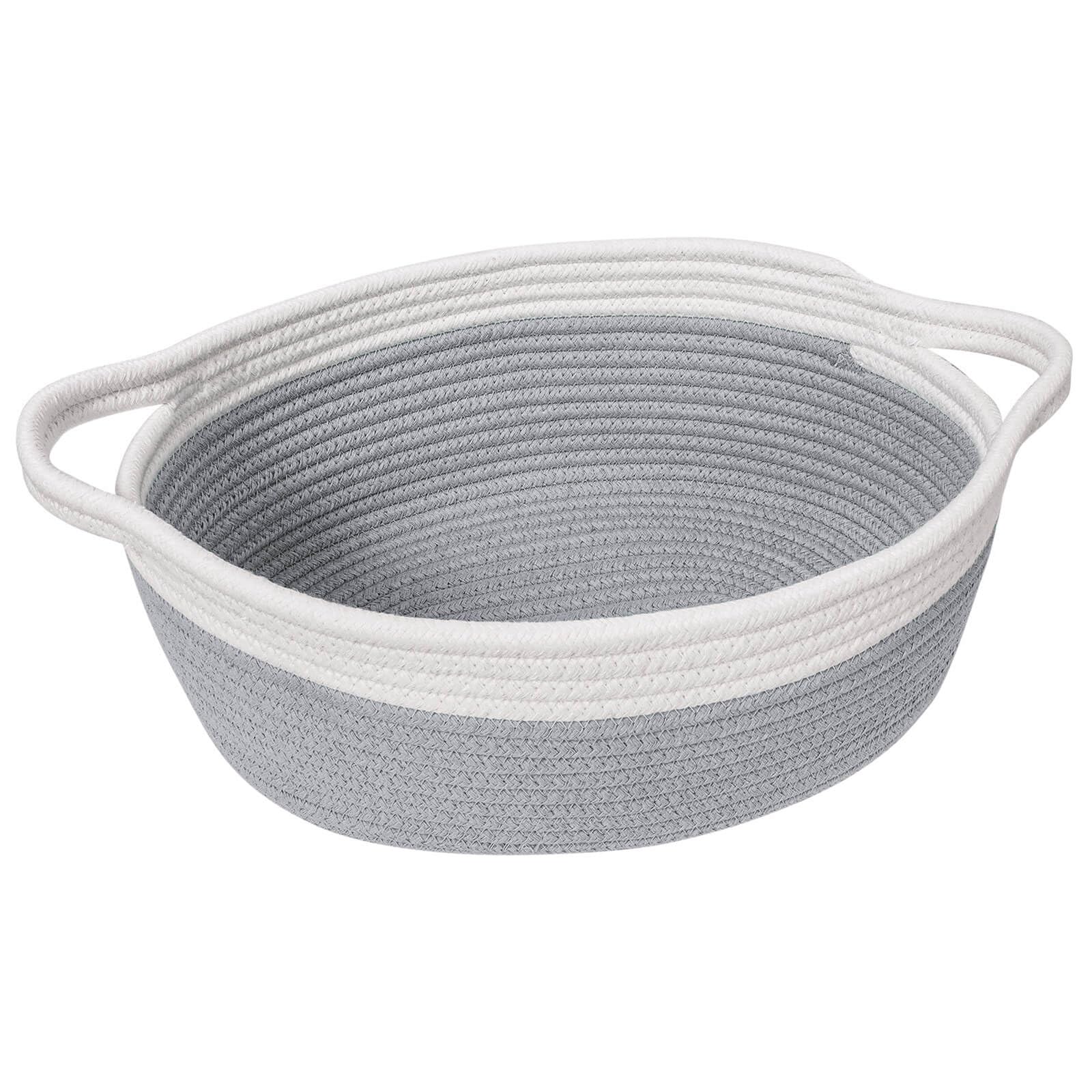 Goodpick Small Woven Storage Basket with Handles, Cotton Rope Baskets for Gifts Empty, Dog Toys, Diapers, Towels, Easter Baskets for Kids, 12" x 8" x 5", Gray