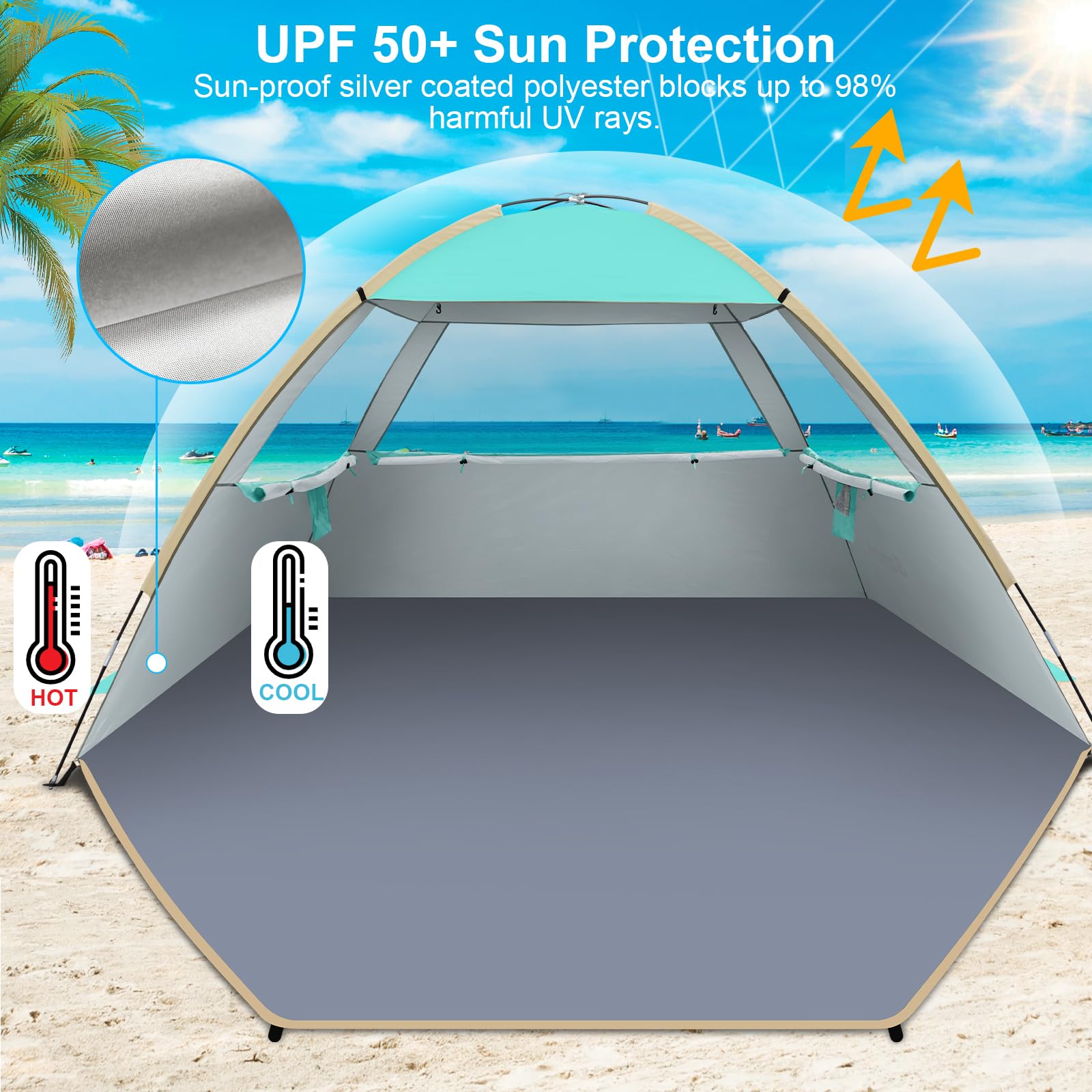 • Super Large Space: Size of 106.3'L x 106.3'W x 63'H, 30% bigger than other POP-UP tent at similar price, fits 6-7 person. It provides a comfortable space for family and friends on the beach