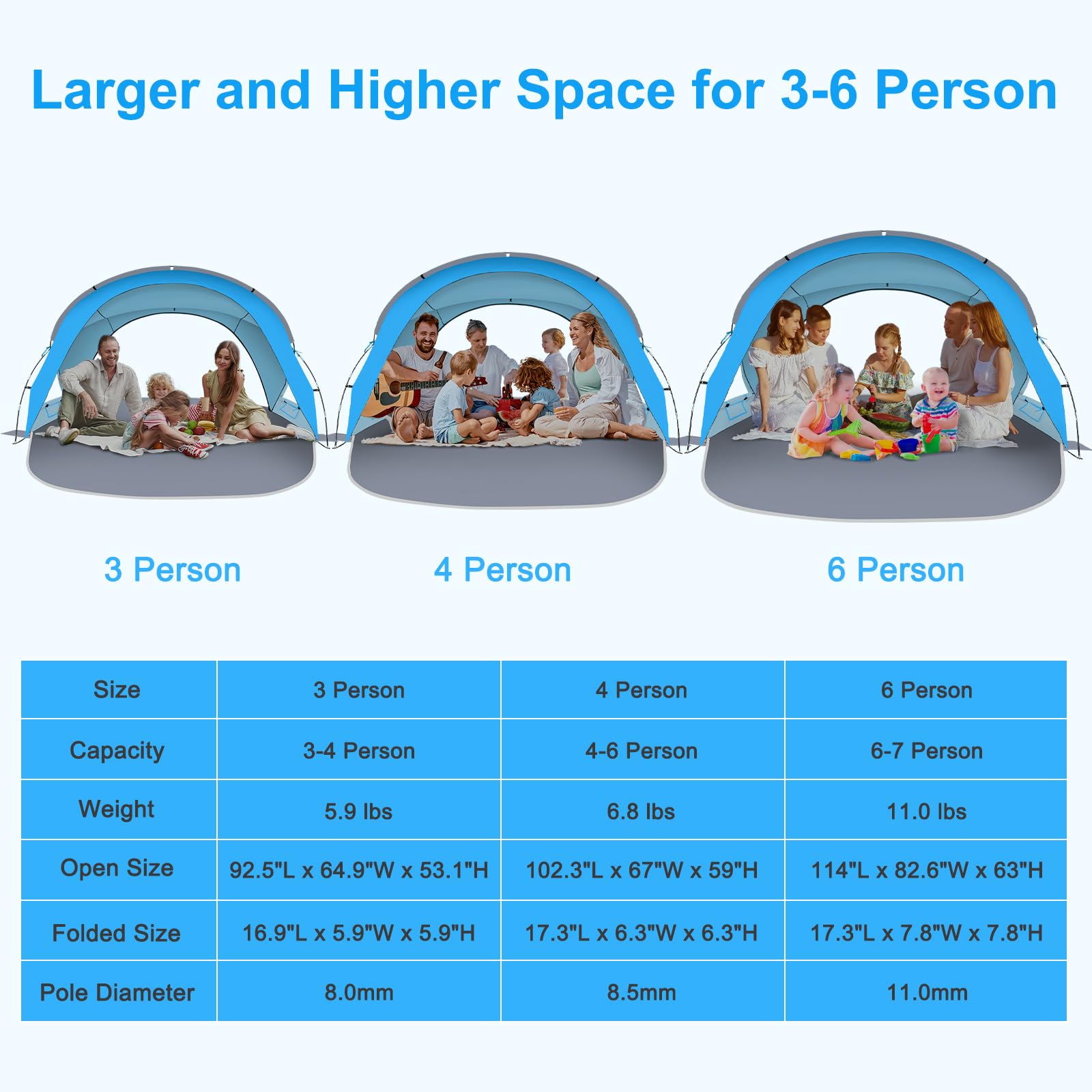 Gorich Beach Tent Sun Shelter with UPF50+ UV Protection for 3/4-5/6-7 Person, Lightweight & Portable Beach Shade Canopy with 2 Zippered Doors, Easy Setup Family Beach Umbrella