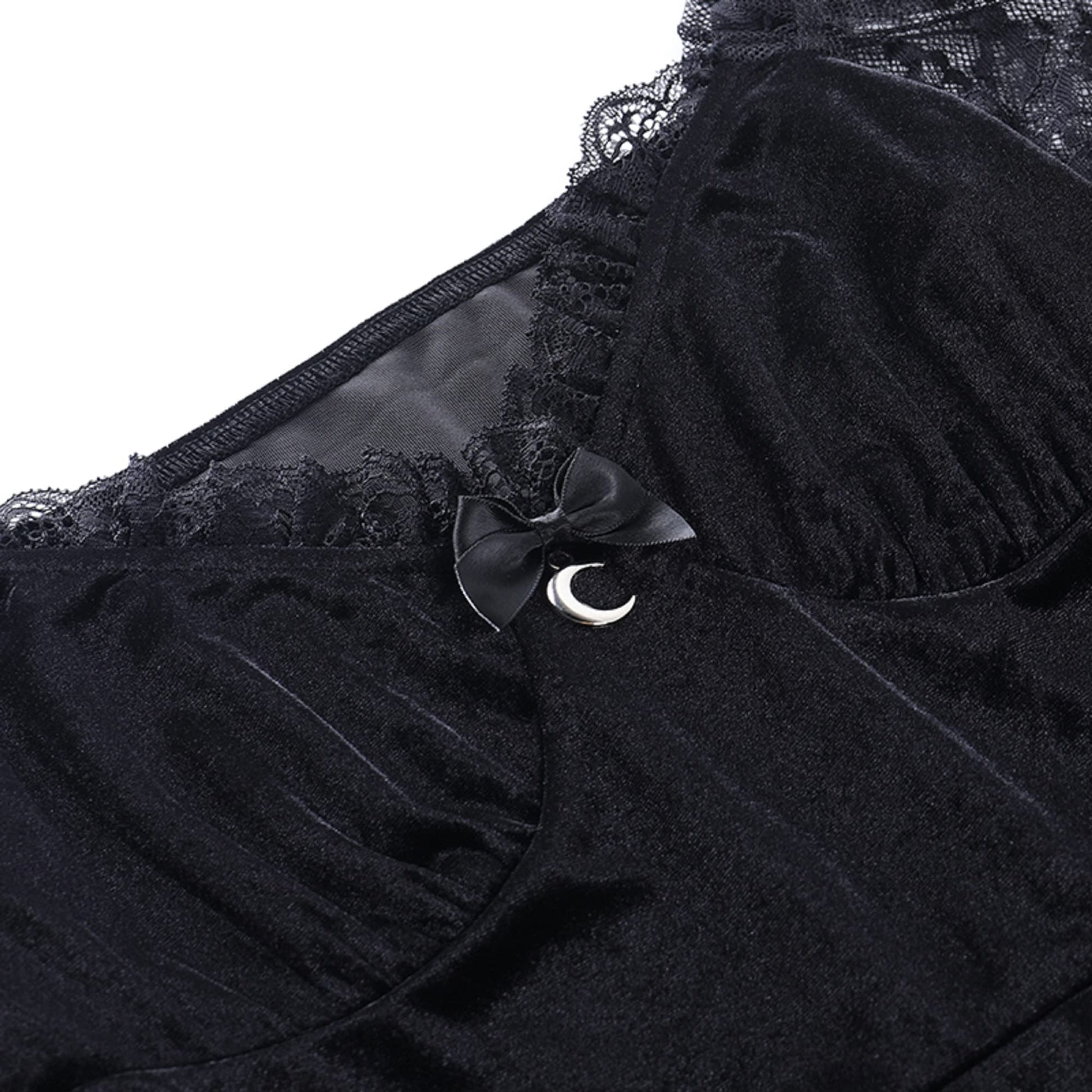 • This fairy dress features a slim silhouette that flatters your figure effortlessly. The moon hangings and bow tie add a touch of allure and sophistication. This lolita dress is a must-have for gothic and y2k fashion enthusiasts.