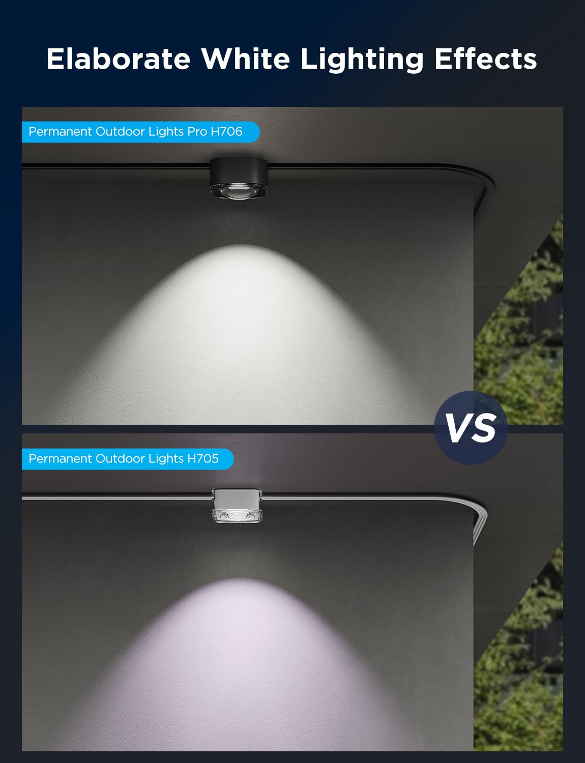 • Enhanced Warm White and Cold White Lighting: Govee outdoor lights can do more than holiday lighting. It can also be used for daily and accent lighting. With up to 50 lm per light, the color temperature of permanent lights is between 2700K-6500K