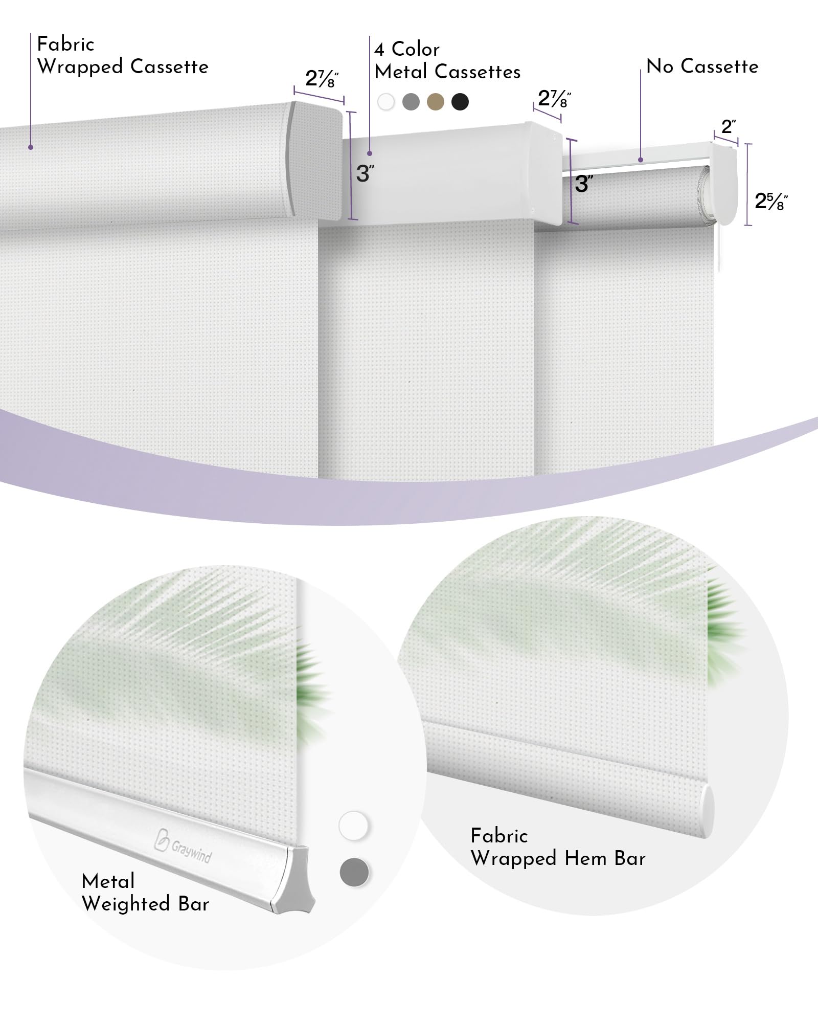• Functional shades: 5% openness, 95% uv protection while still keep exterior visibility, fireproof, waterproof and dusty-free. Filter light and reduce heat, also create air circulation, ideal indoor window treatments for living room, patio sliding door, office etc. Cordless style, safe for children and pets. Rohs certificated, environmental friendly. Valance and designed bottom bar for customized option.