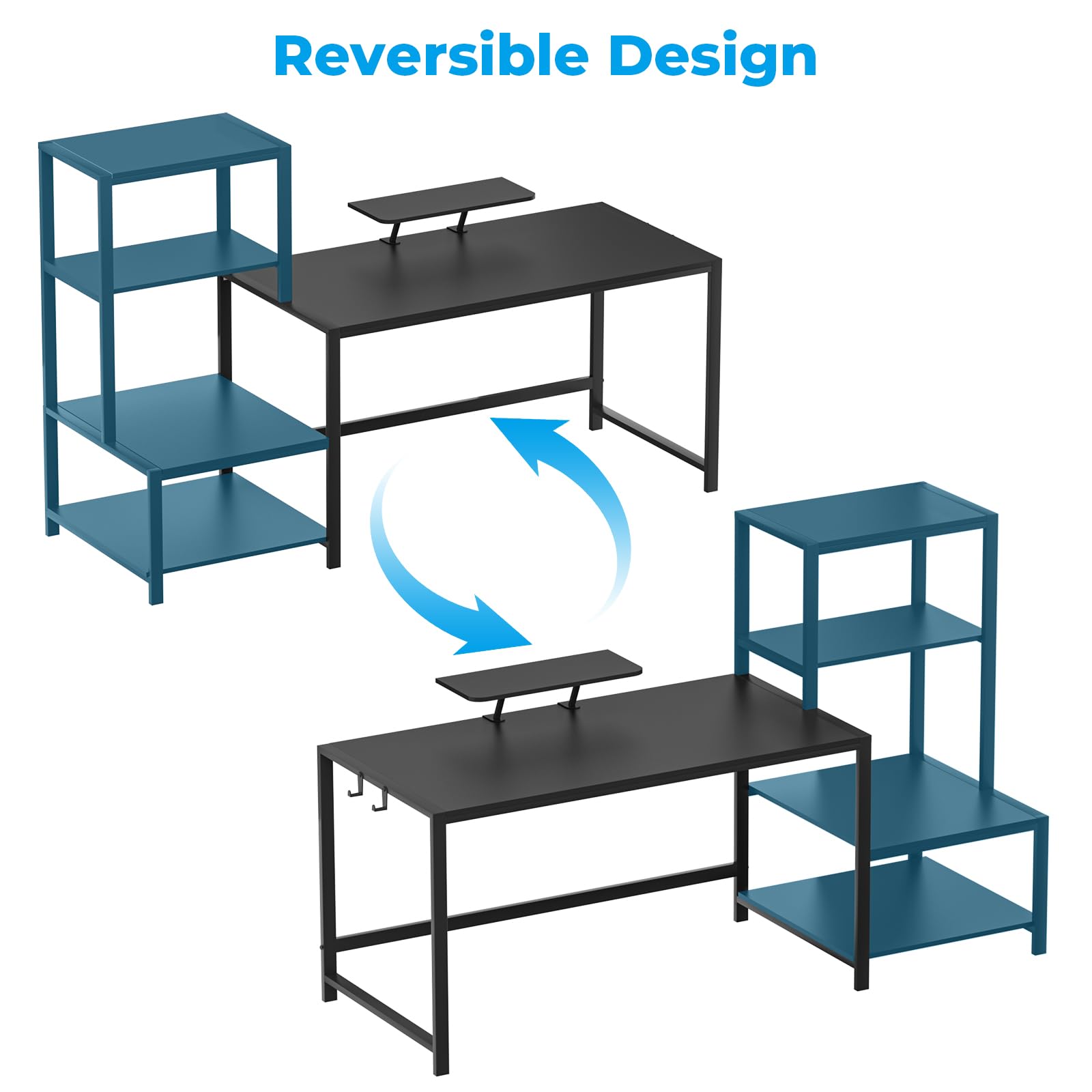 • Adjustable & Versatile Shelves: Featuring 4 reversible storage shelves, the desk can adapt to your space layout—whether on the left or right. Ample storage keeps your workspace clutter-free